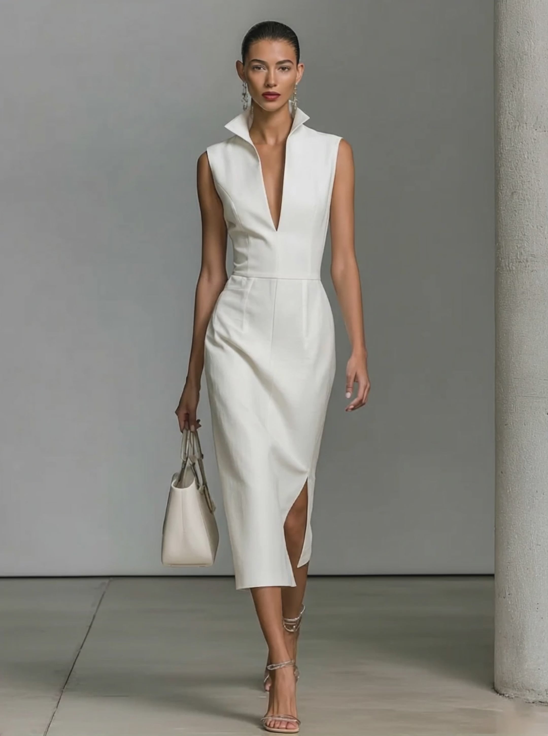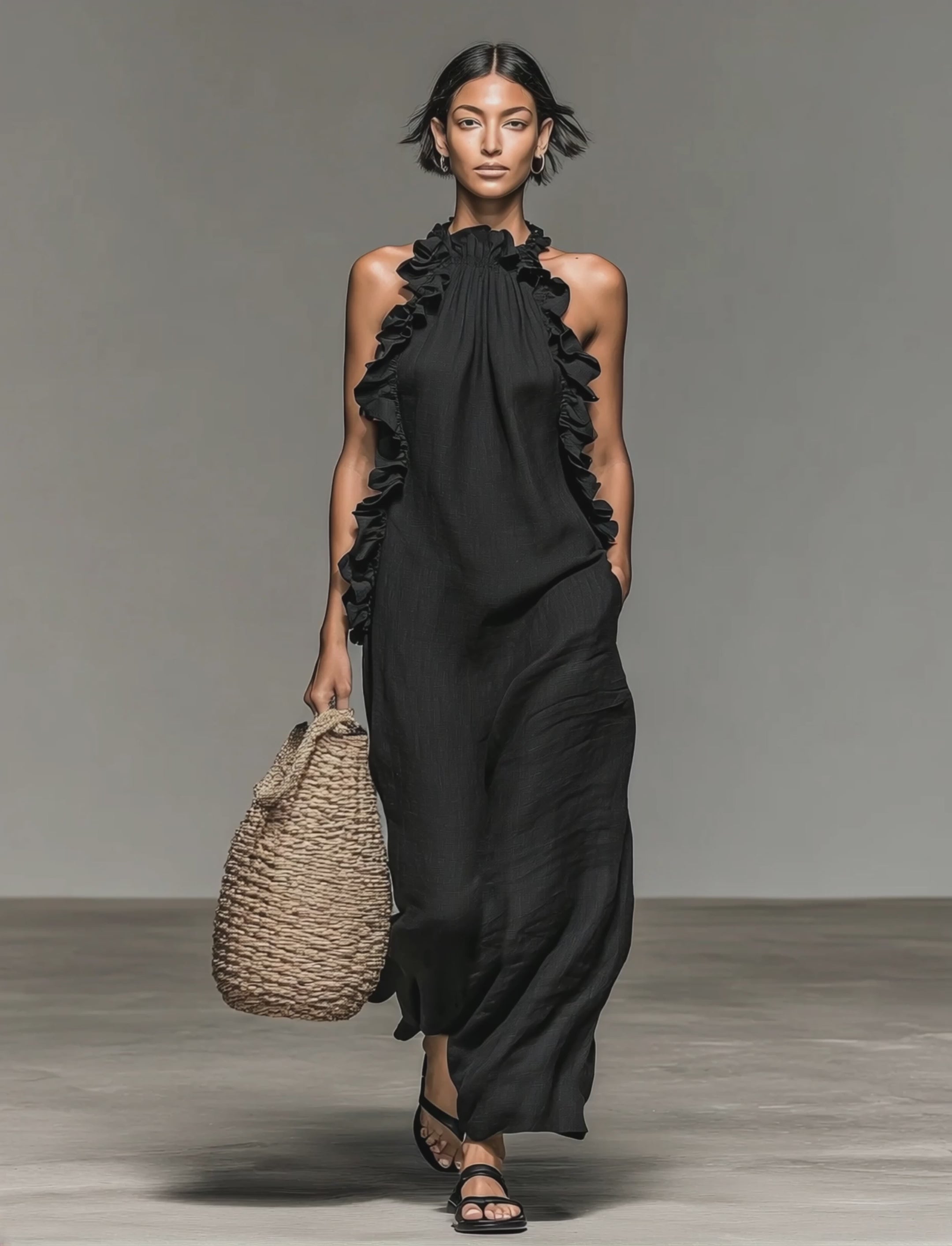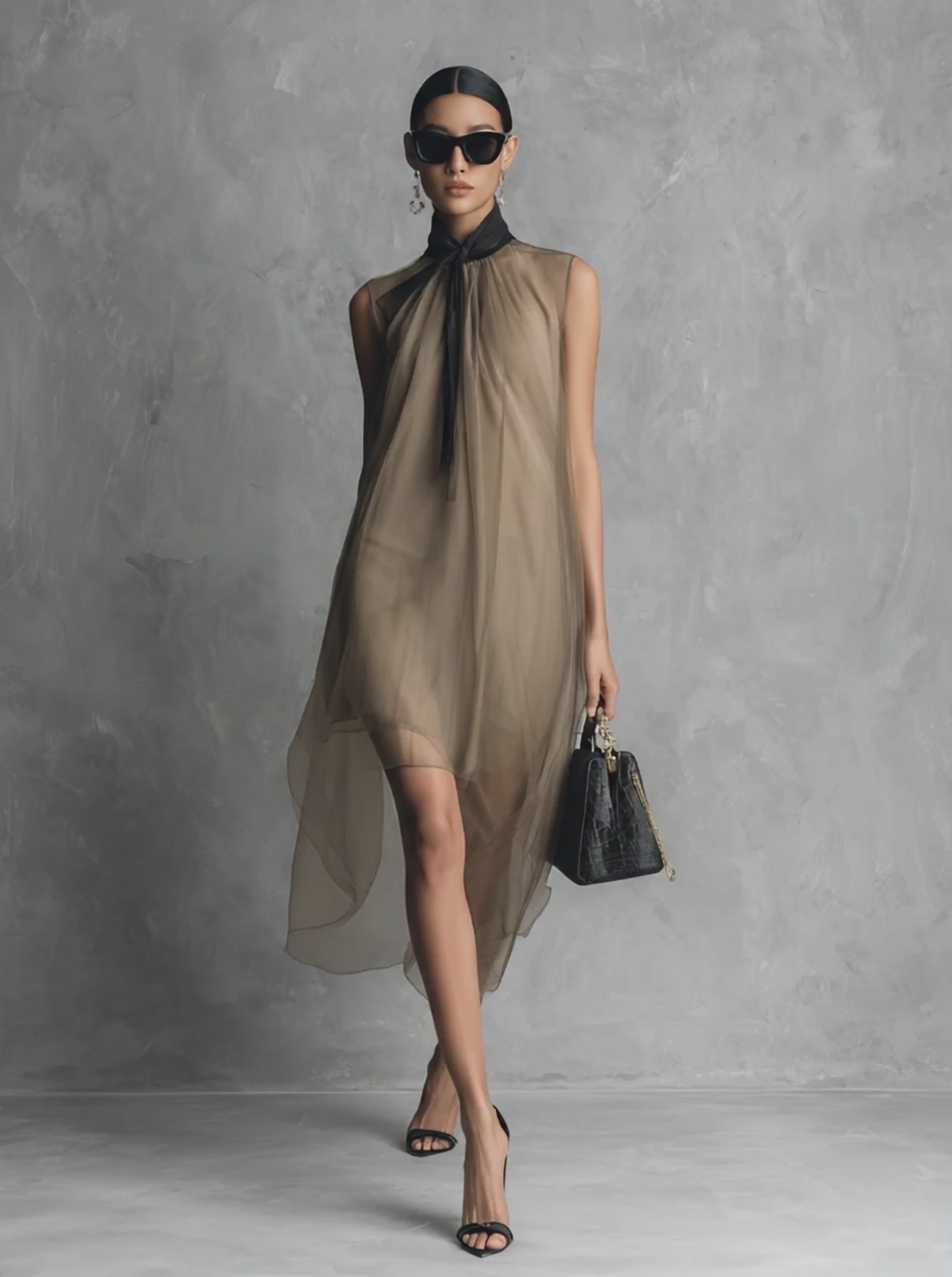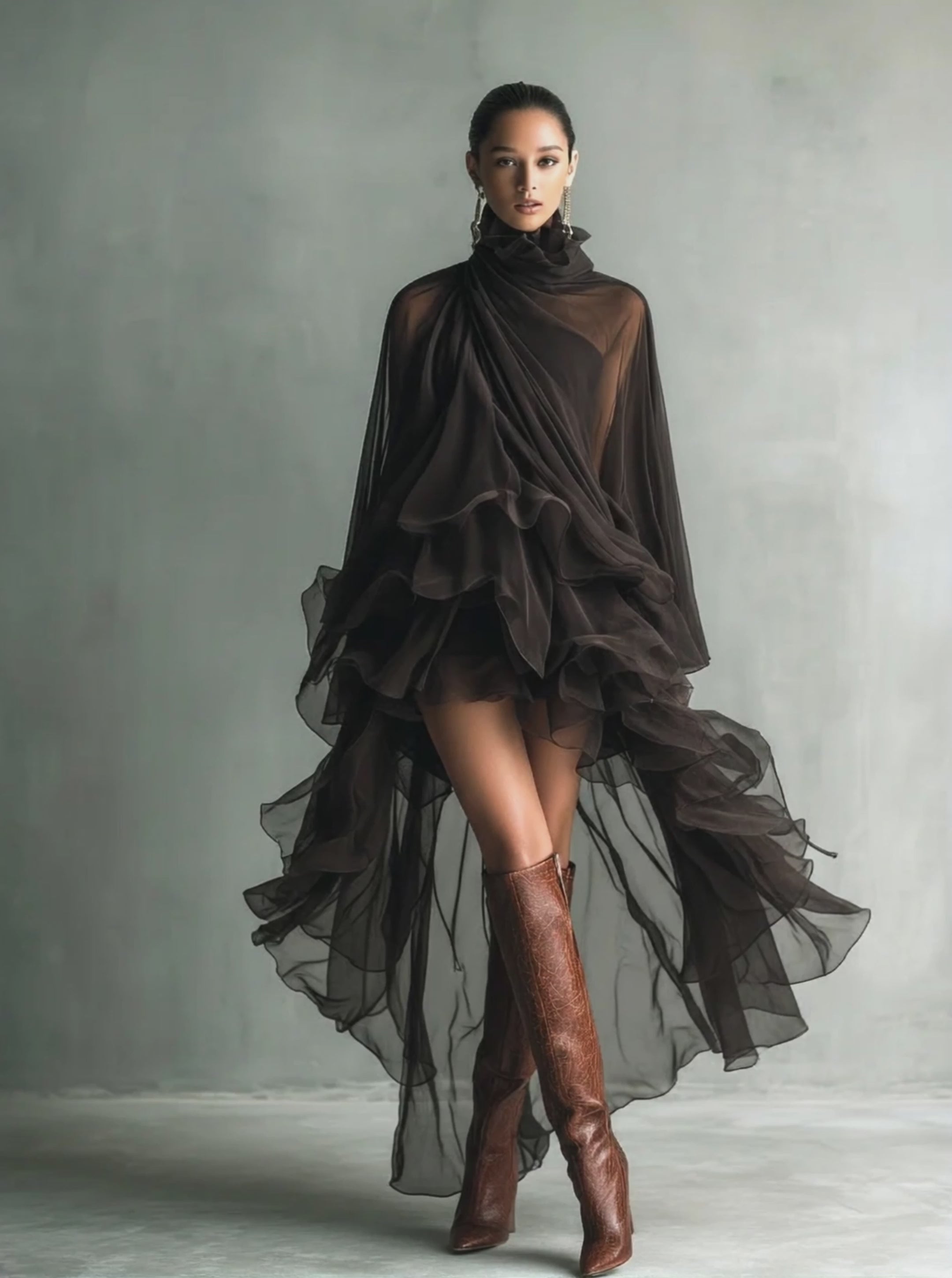This dress is absolutely stunning and effortlessly chic. I love the cold-shoulder design paired with the high neckline—it adds just the right amount of edge while still feeling elegant.