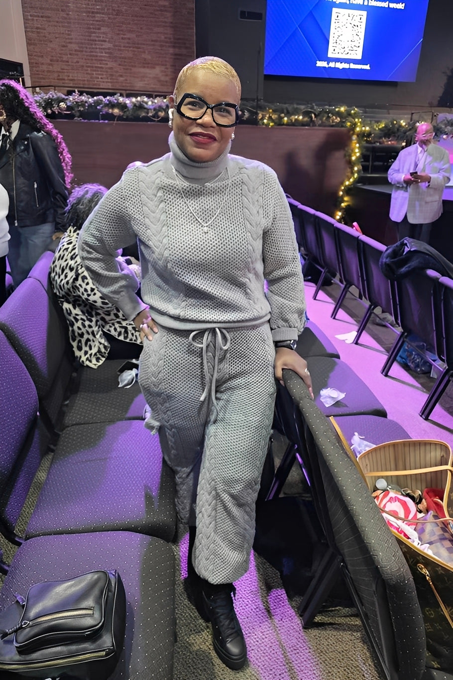 My lady looked absolutely stunning in this piece! The cozy sweater dress complemented her bold style perfectly and stood out beautifully against the artistic backdrop.