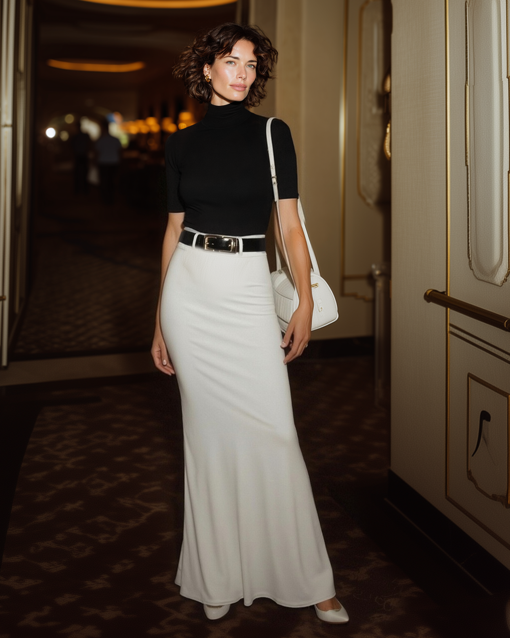 This dress is absolutely stunning and effortlessly chic. I love the cold-shoulder design paired with the high neckline—it adds just the right amount of edge while still feeling elegant.