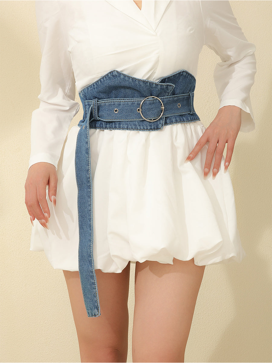 Women's Casual Denim Ring - Buckle Wide Waist Belt MDA1676H1I
