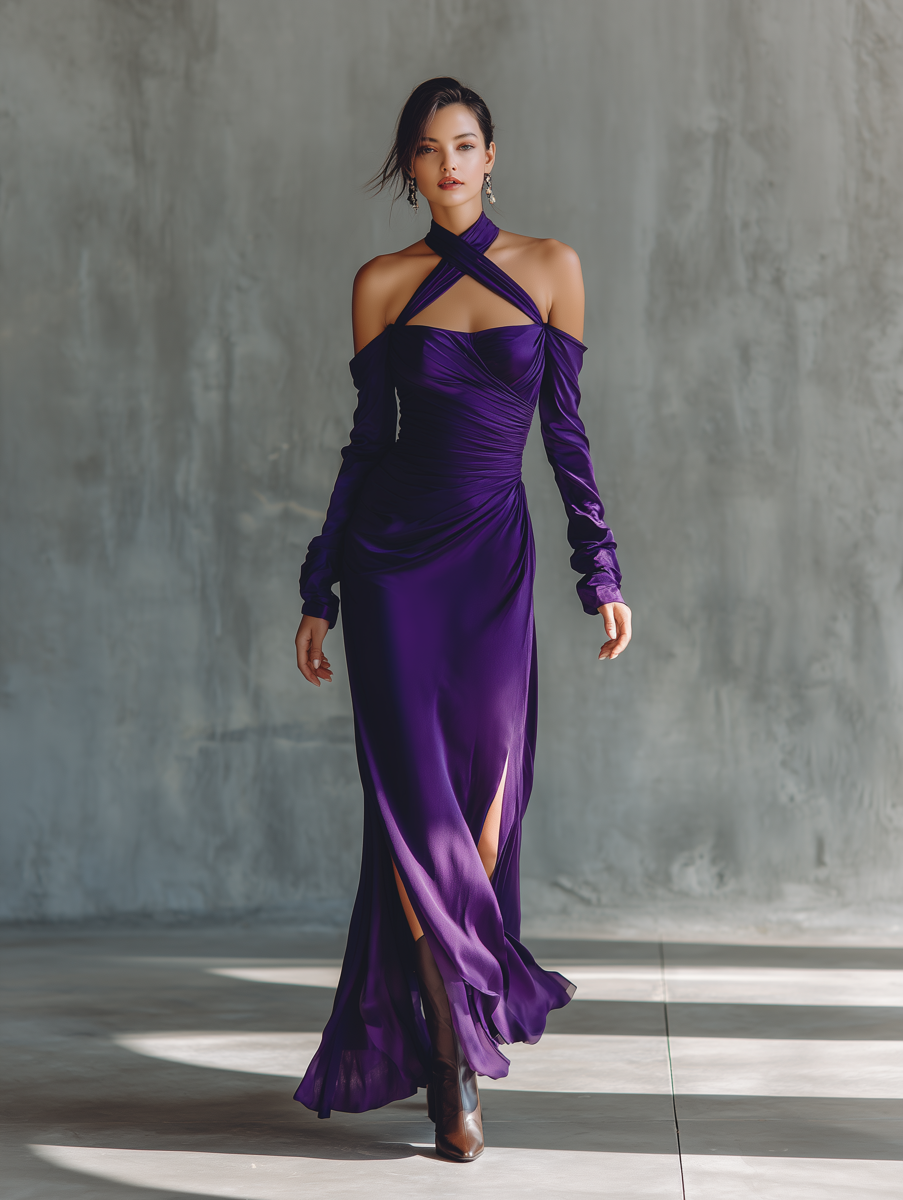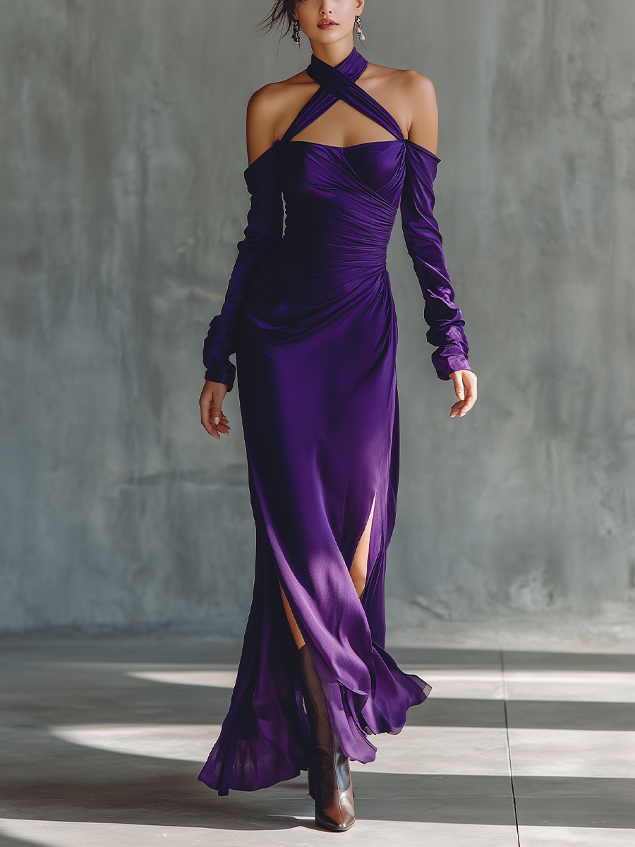 Women's Royal Purple Stretch Knit Sexy Halter Neck Maxi Dress MDA0627K8T