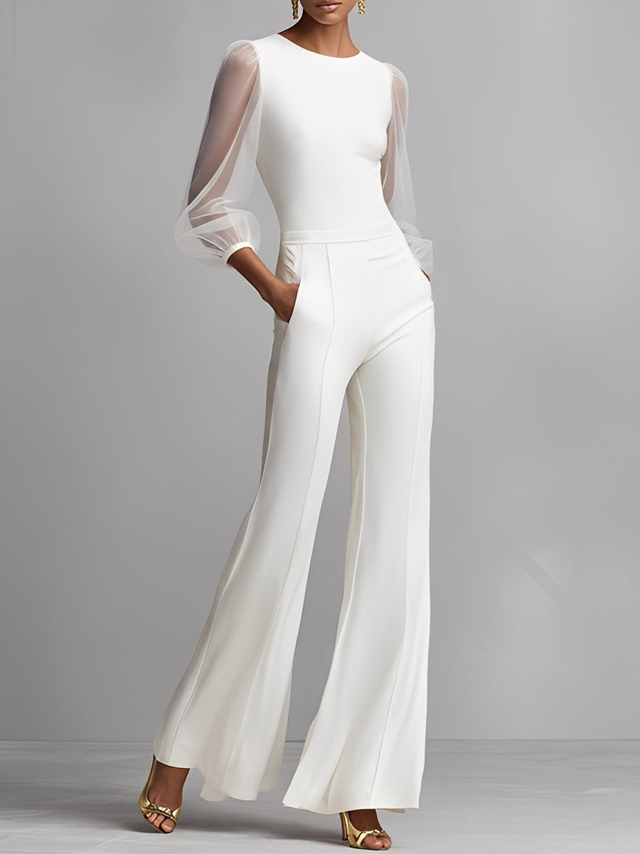 Women's White Cotton Blend Elastic Mesh Jumpsuit MDA2951K7I