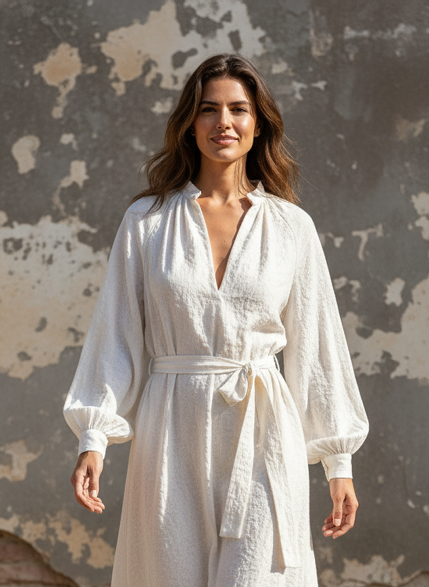 Women's Cotton And Linen Blended Long Sleeve Shirt Jumpsuit MDA3067G8Y