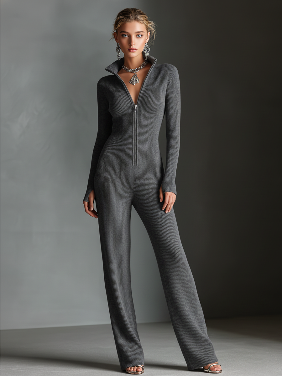Women's Elegant Knit Sparkling Zipper Front Jumpsuit MDA2560G5I