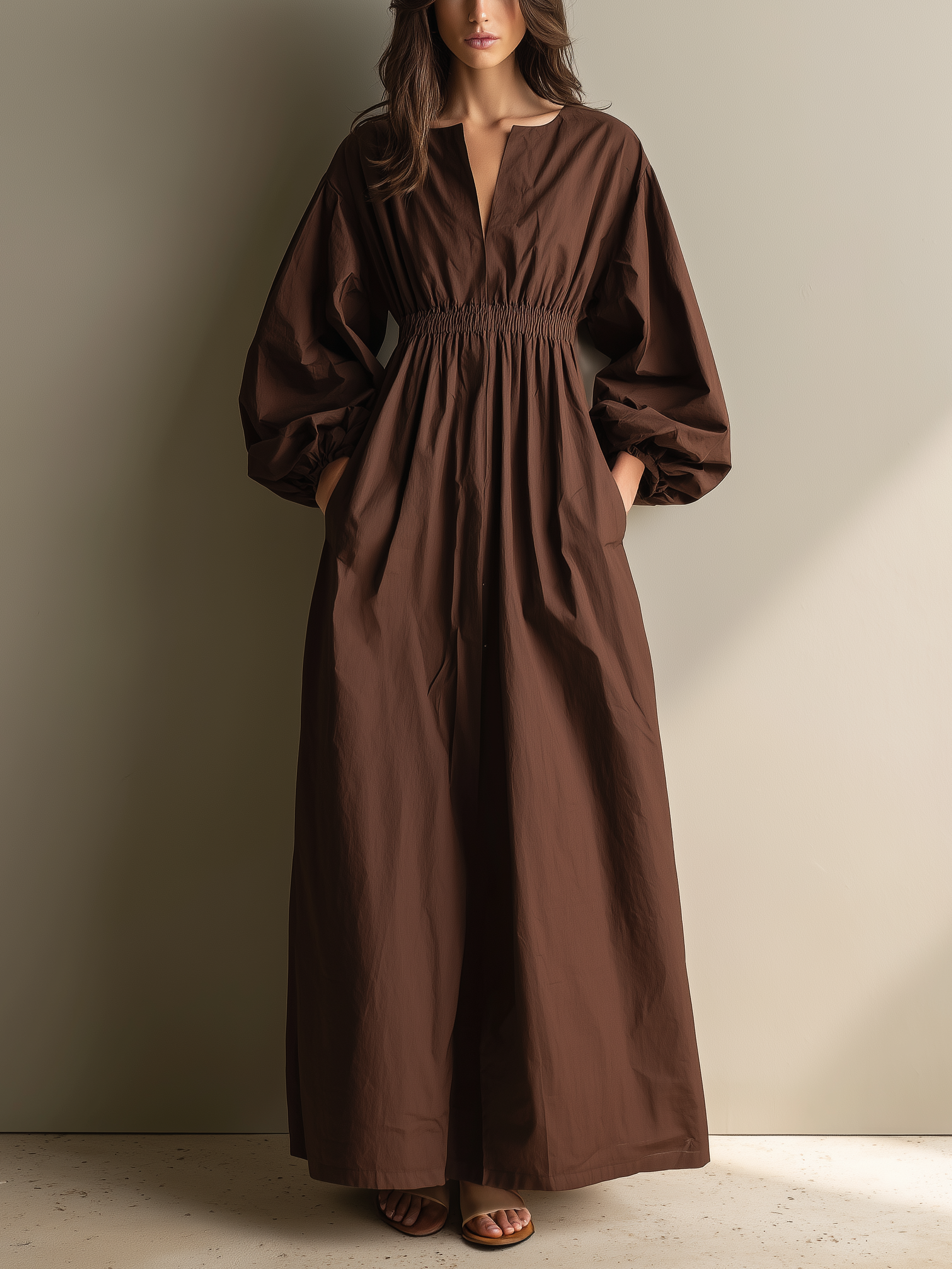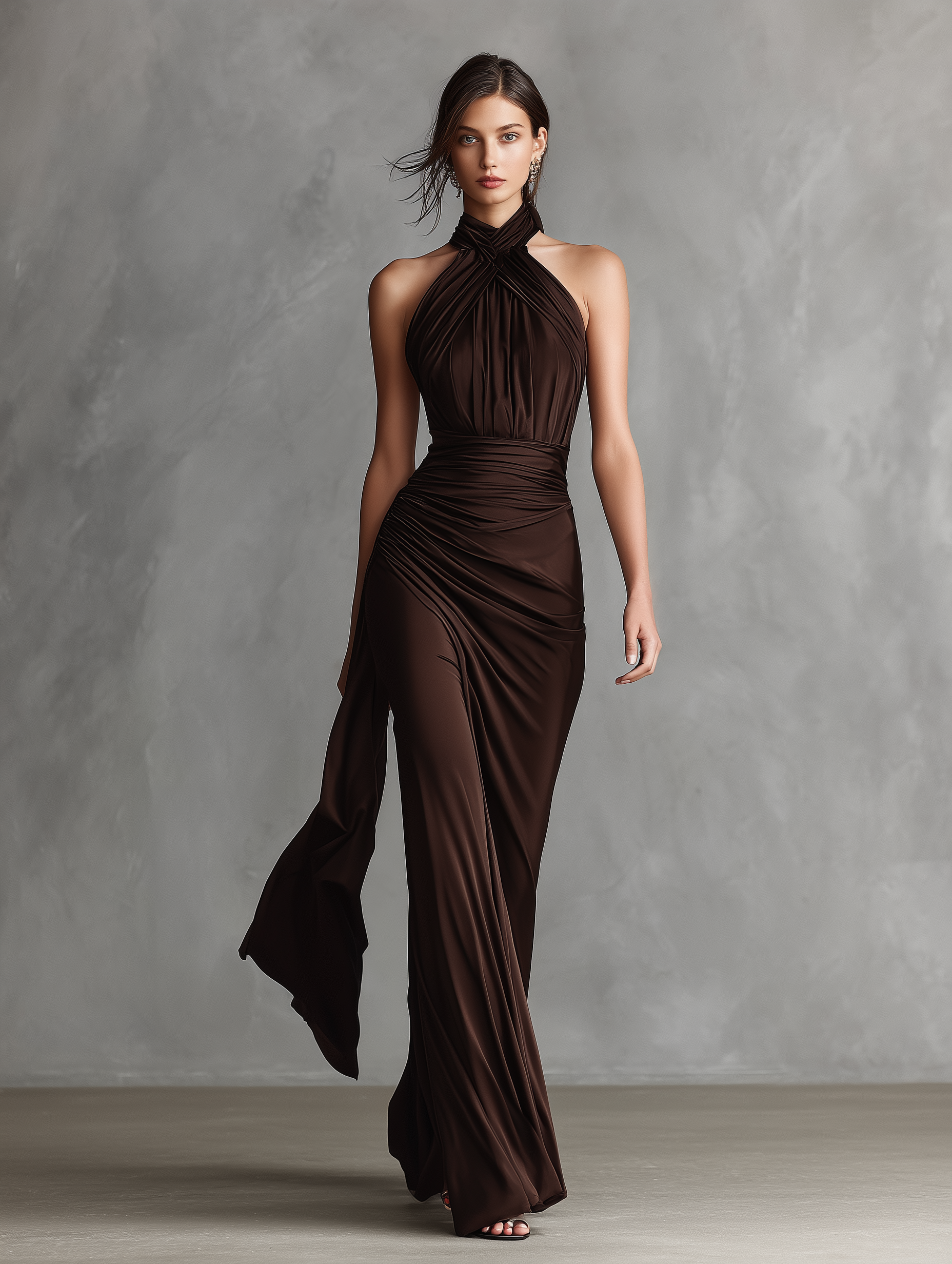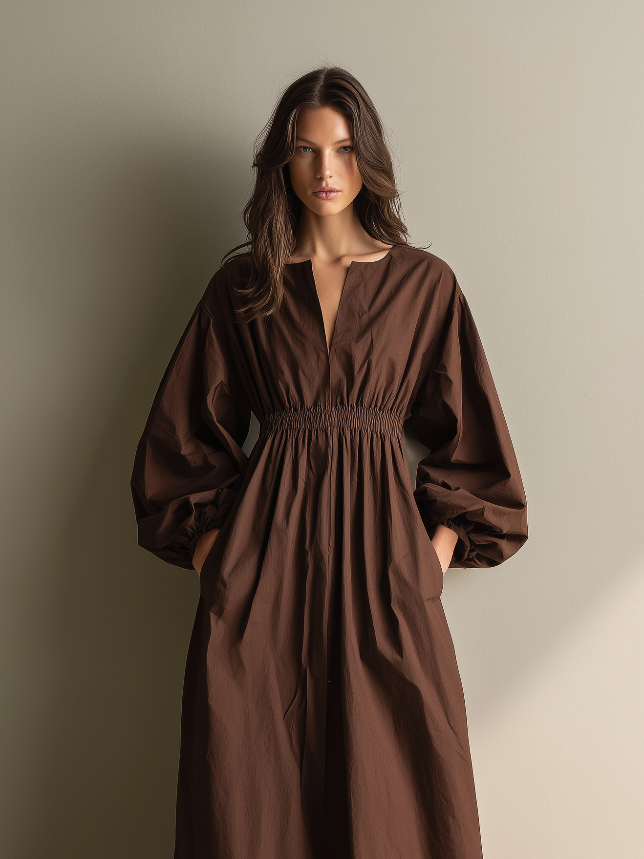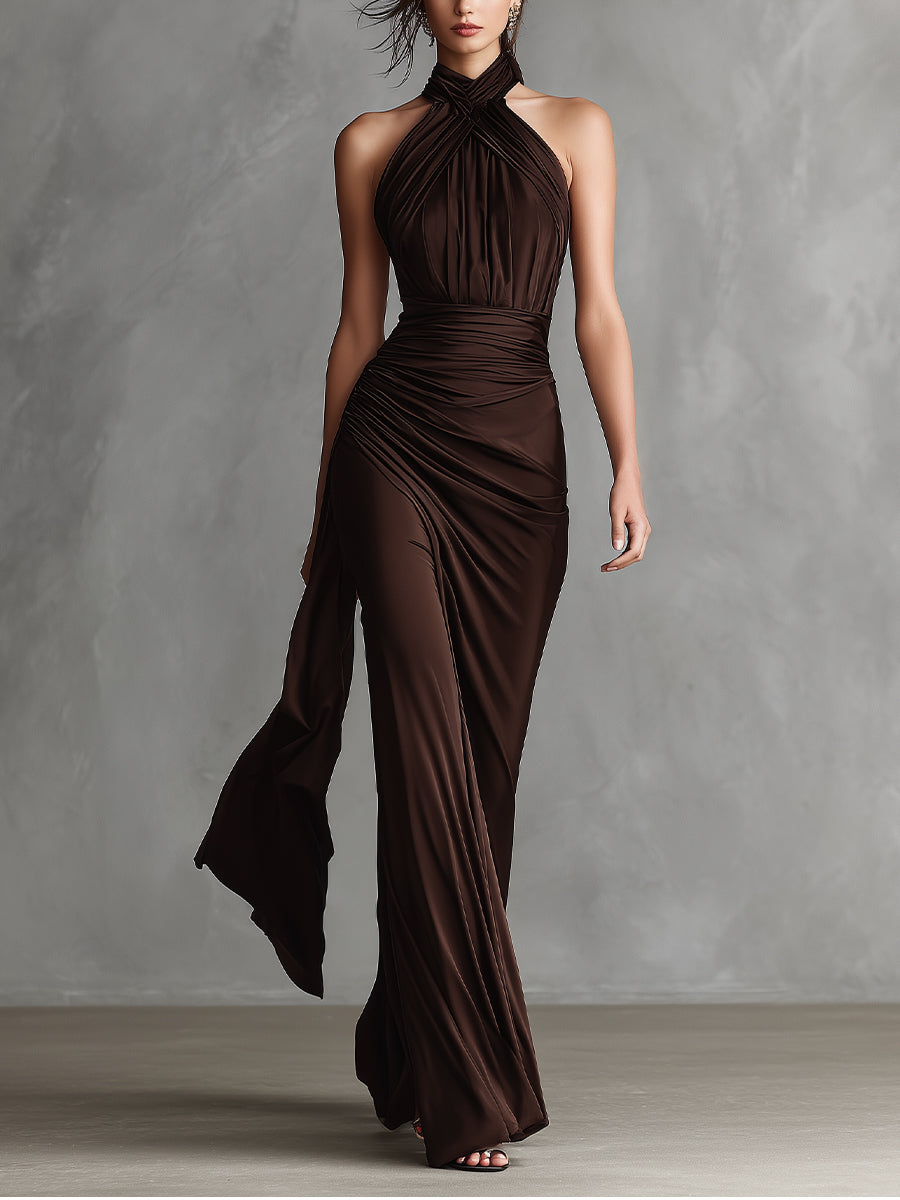 Women's Dark Brown Knitted All-match Mini Dress MDA2971H4T