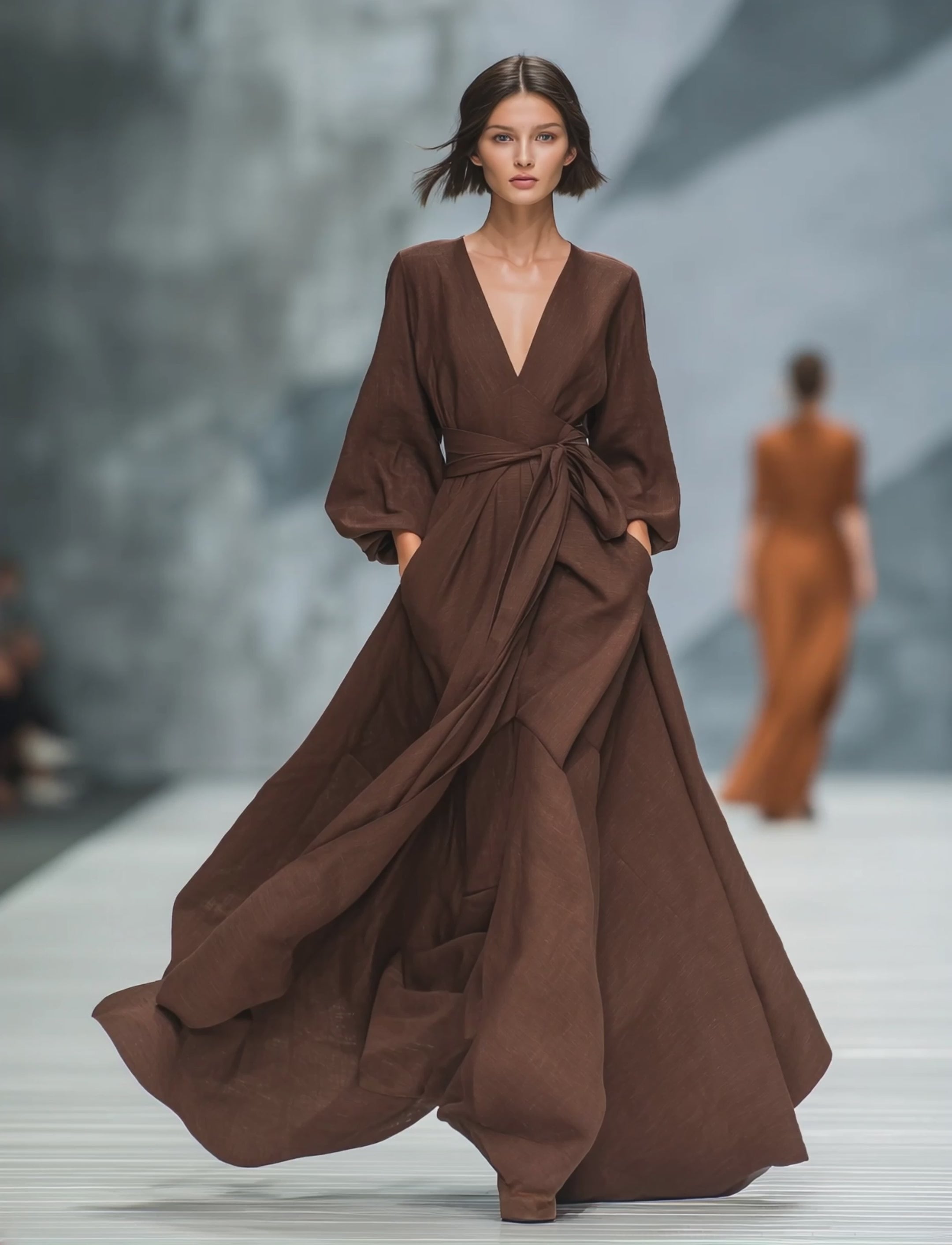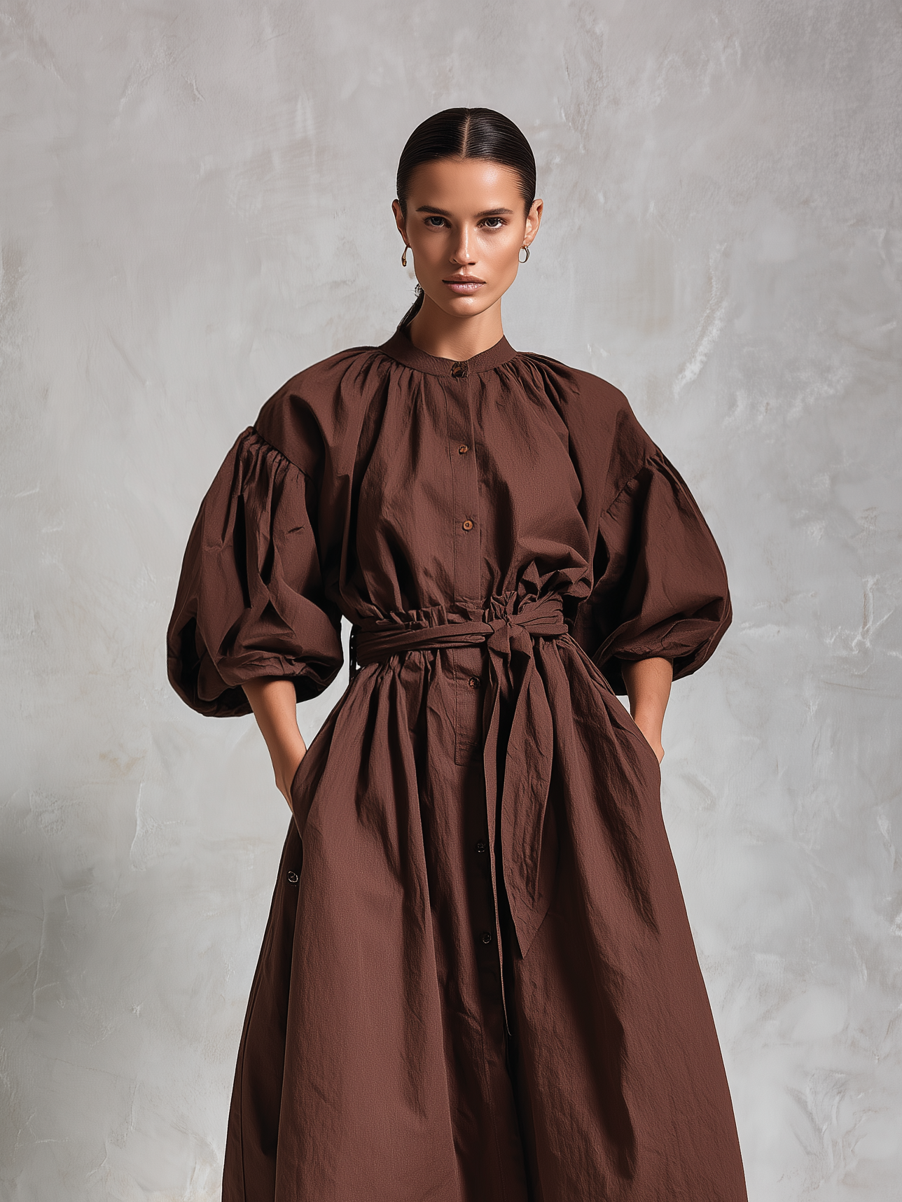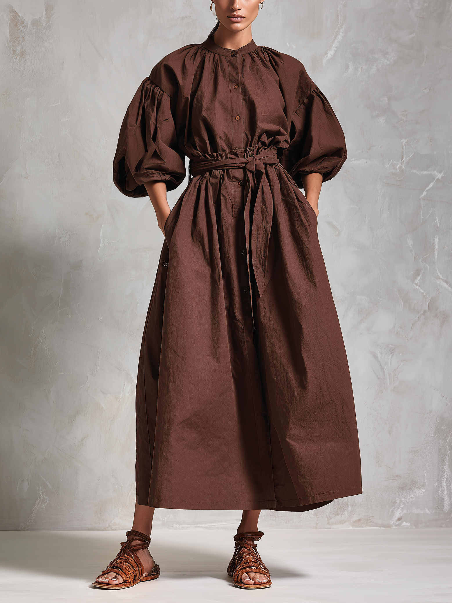 Women's Dark Brown Knitted All-match Mini Dress MDA2971H4T