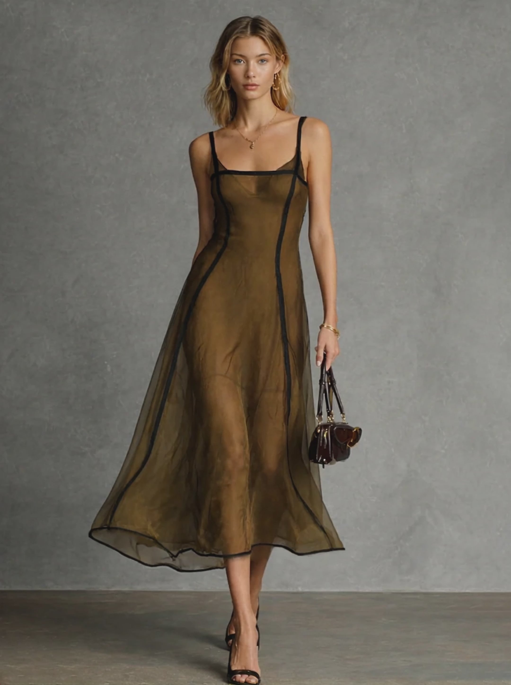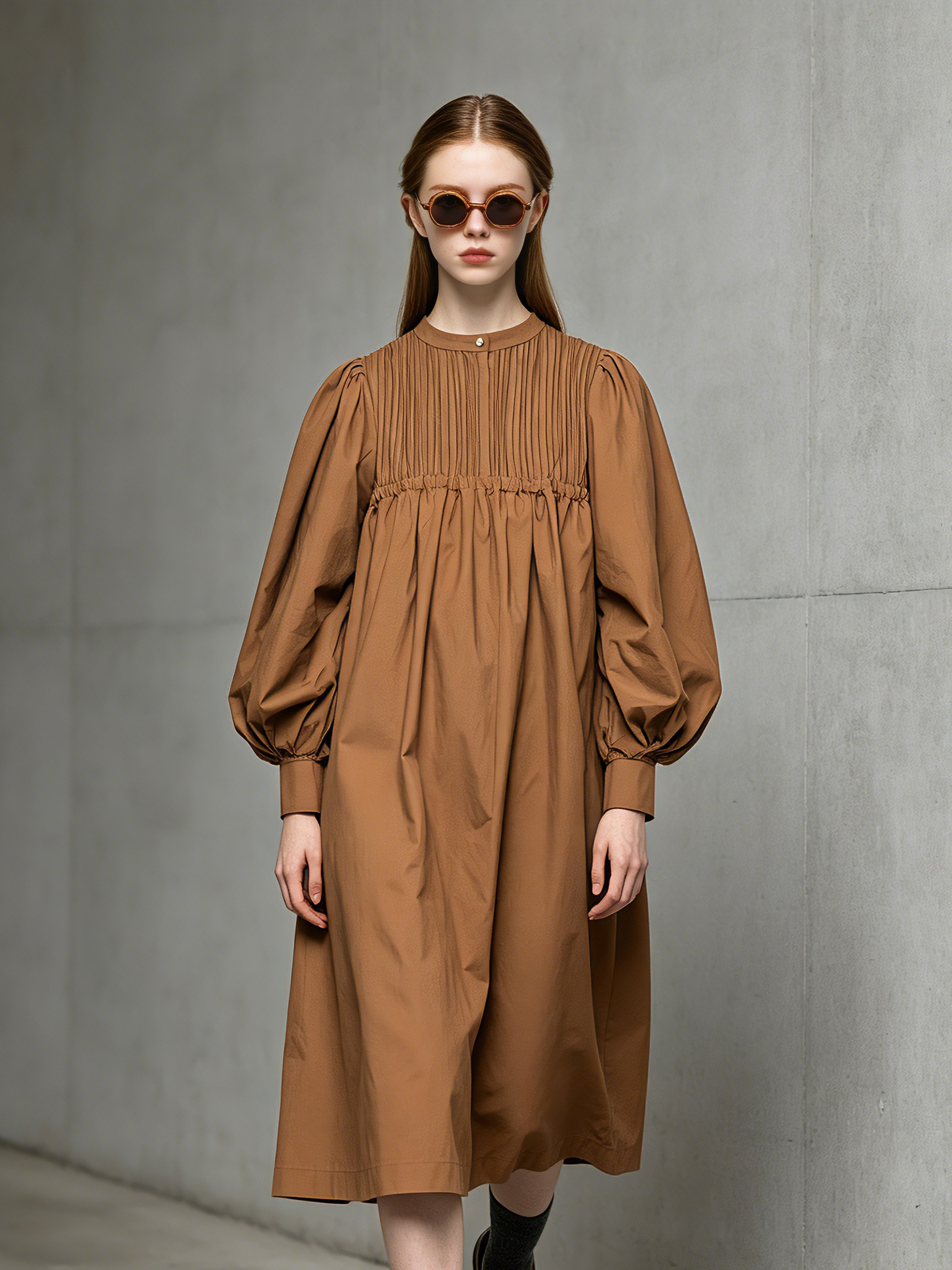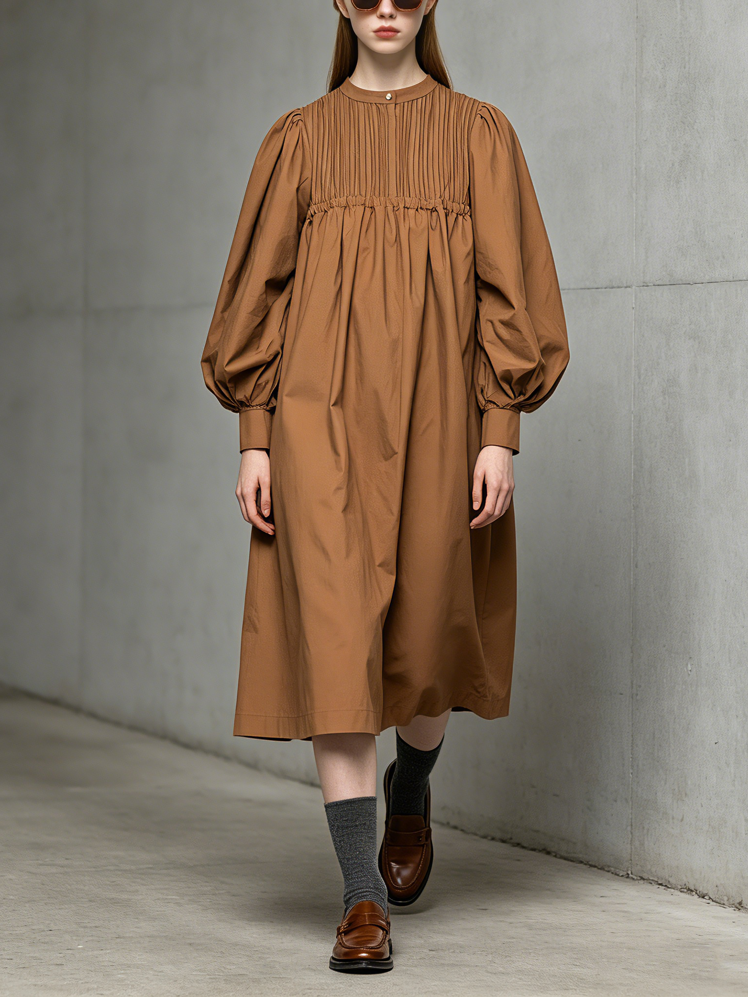 Women's Vintage Brown Blend Shirt Maxi Dress MDA2898G6I