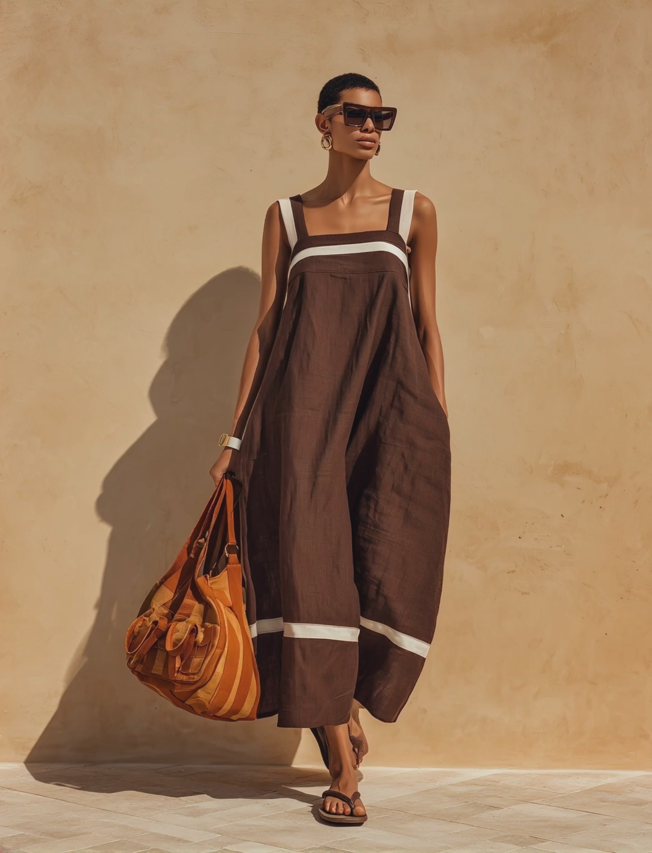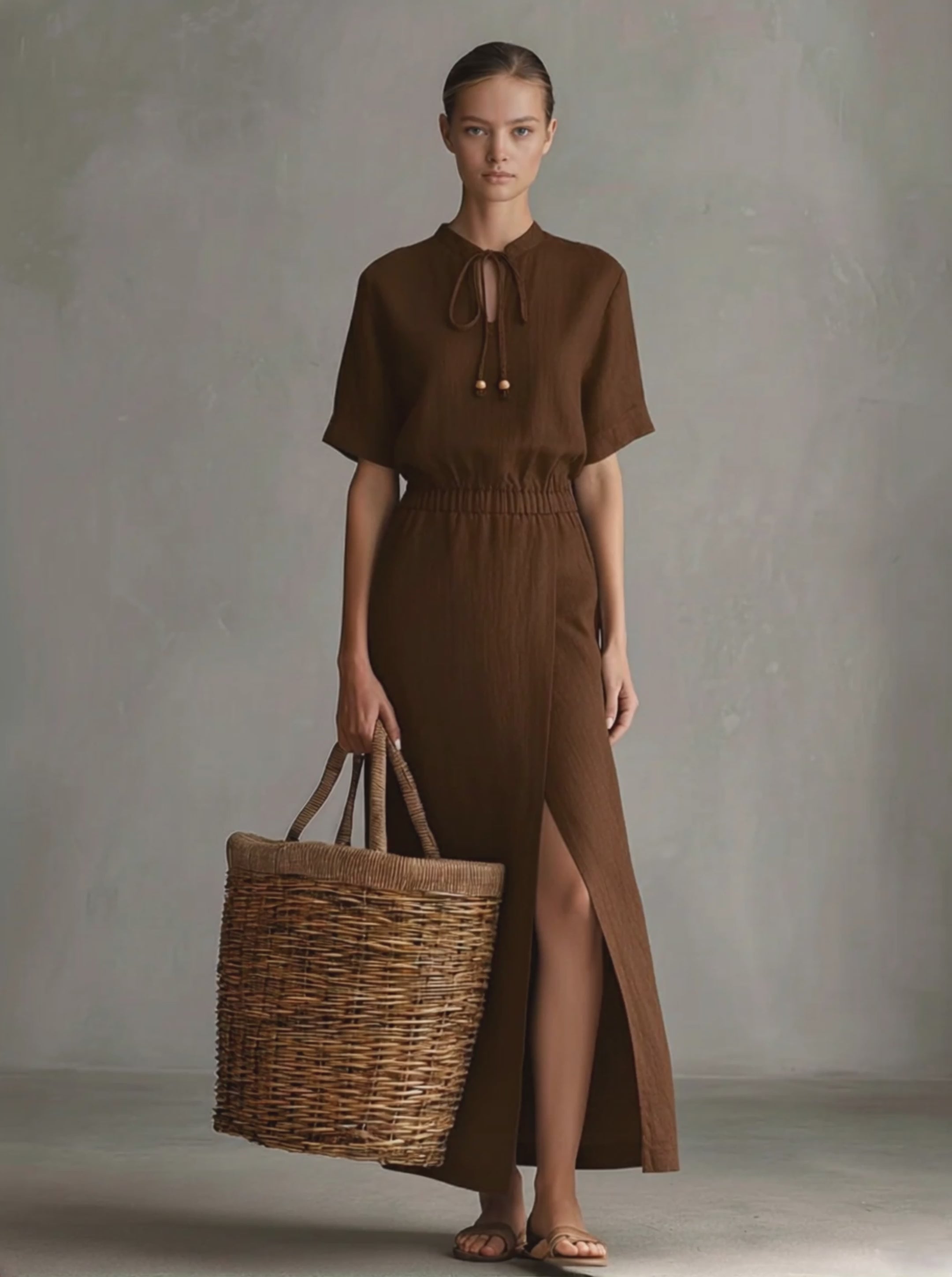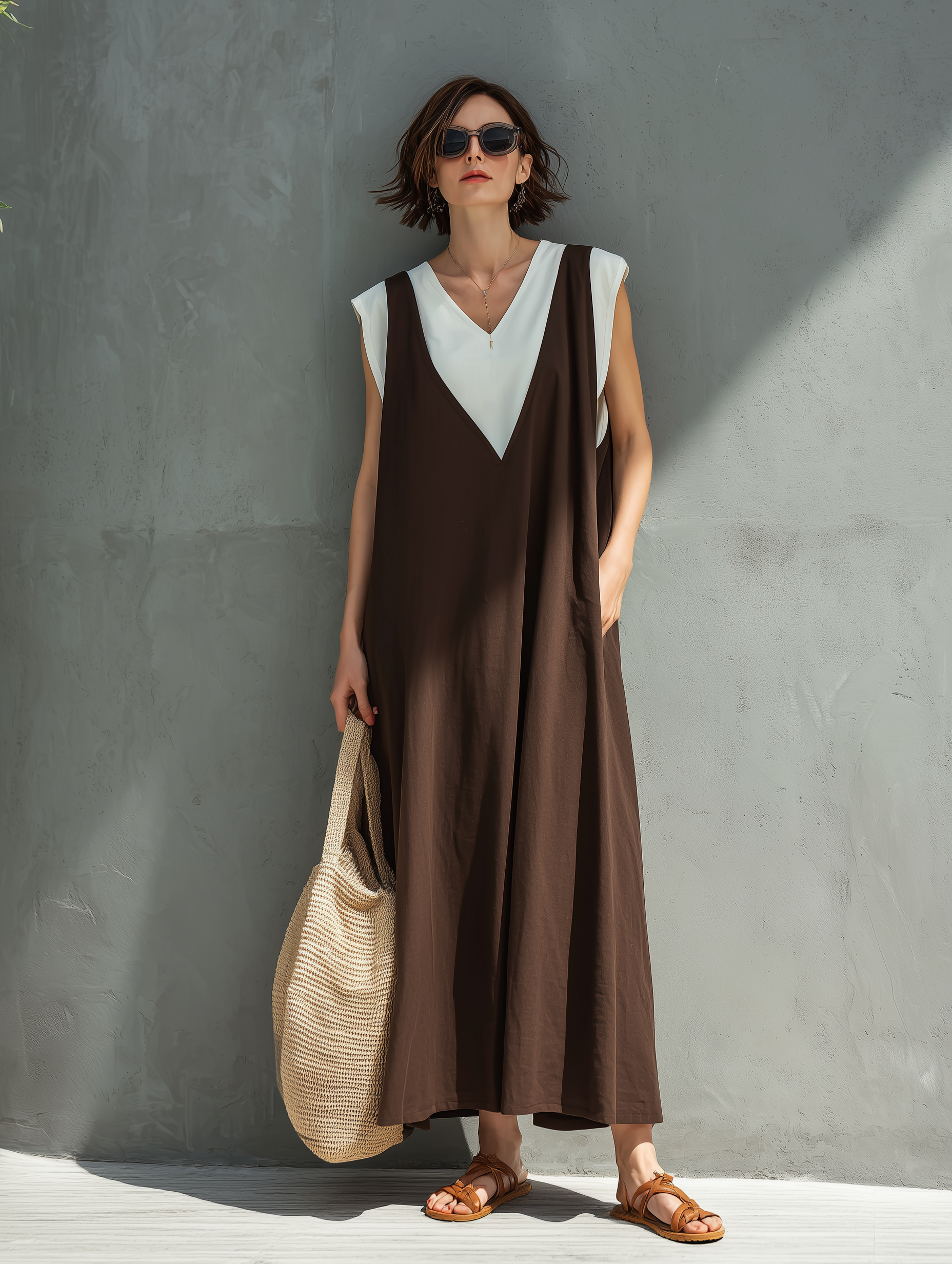 Women's Vintage Brown Blend Shirt Maxi Dress MDA2898G6I