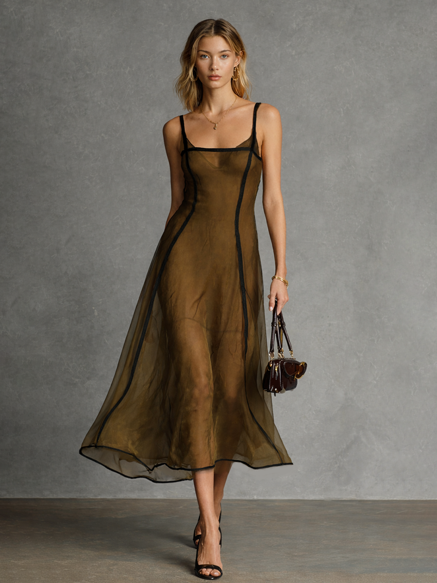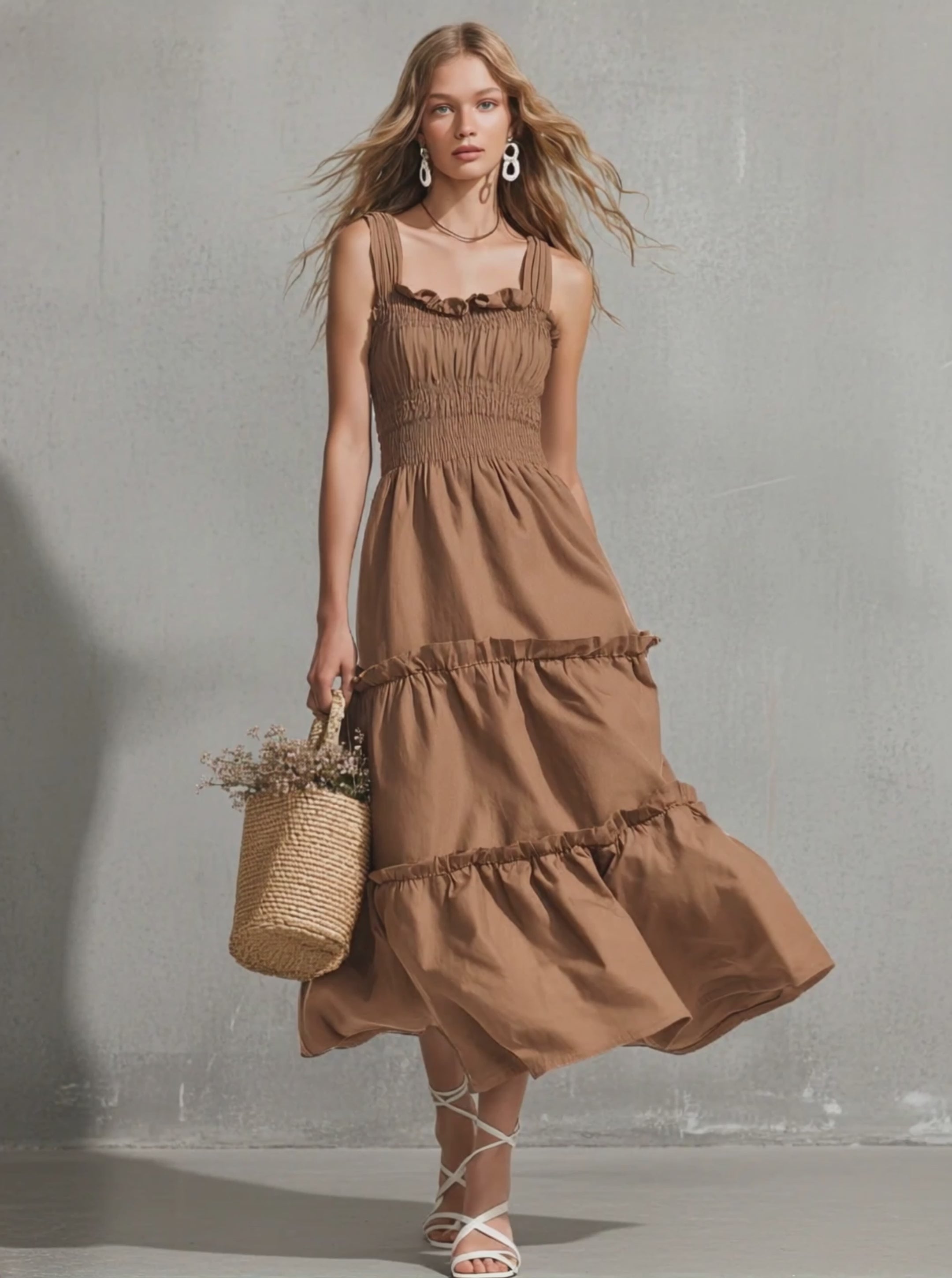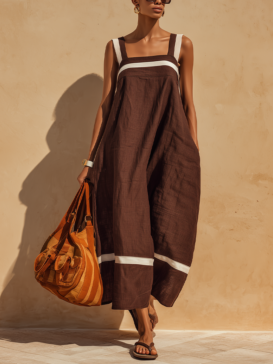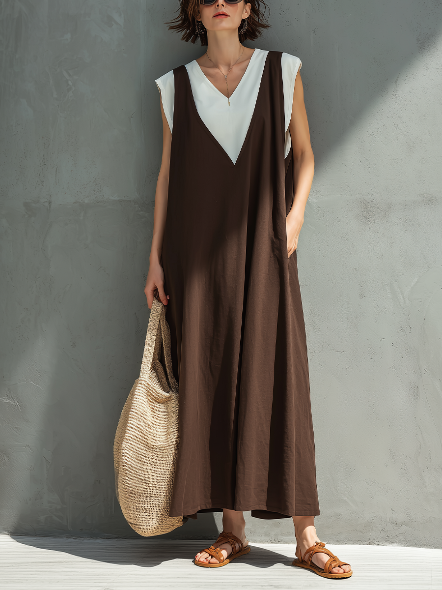 Women's Vintage Brown Blend Shirt Maxi Dress MDA2898G6I
