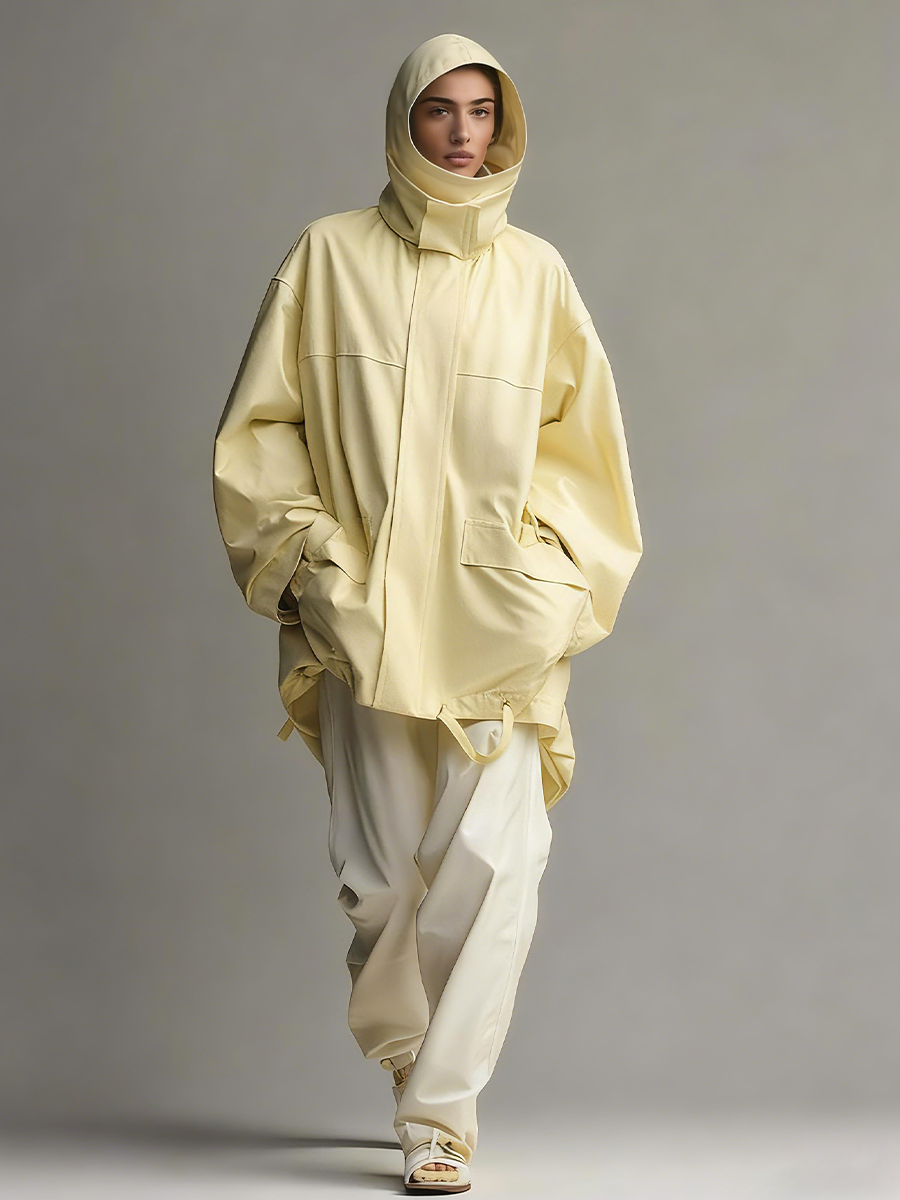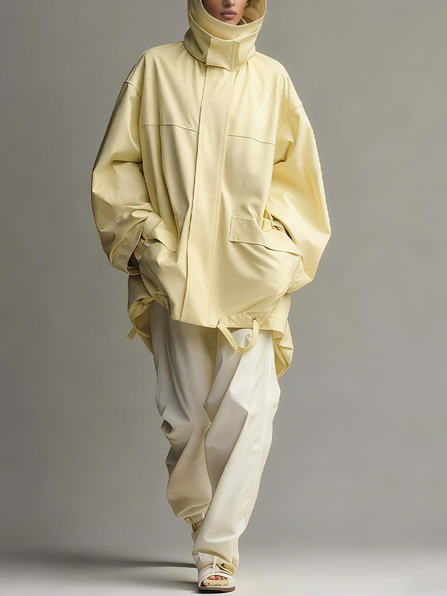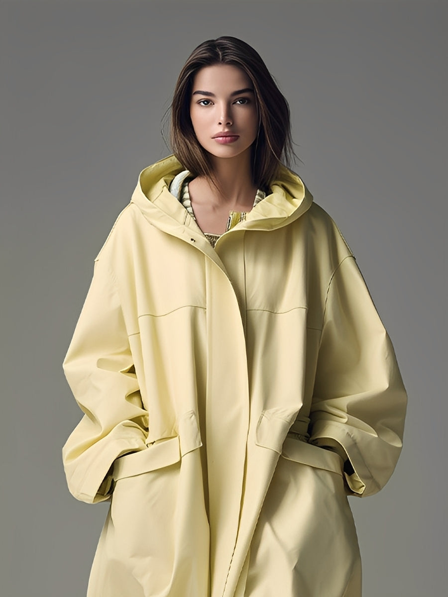 Women's Pale Yellow Cotton Mid-length Coat With Front Zipper MDA2552K6I