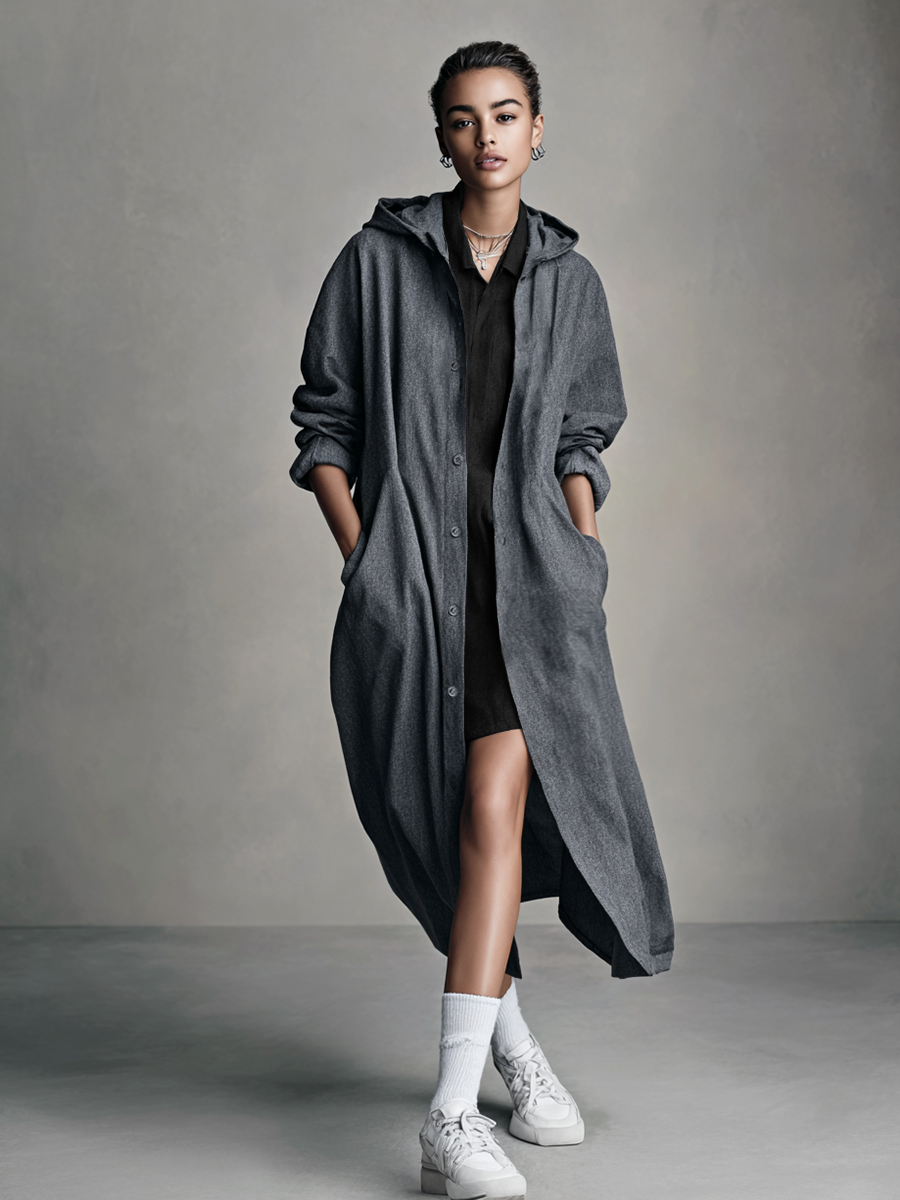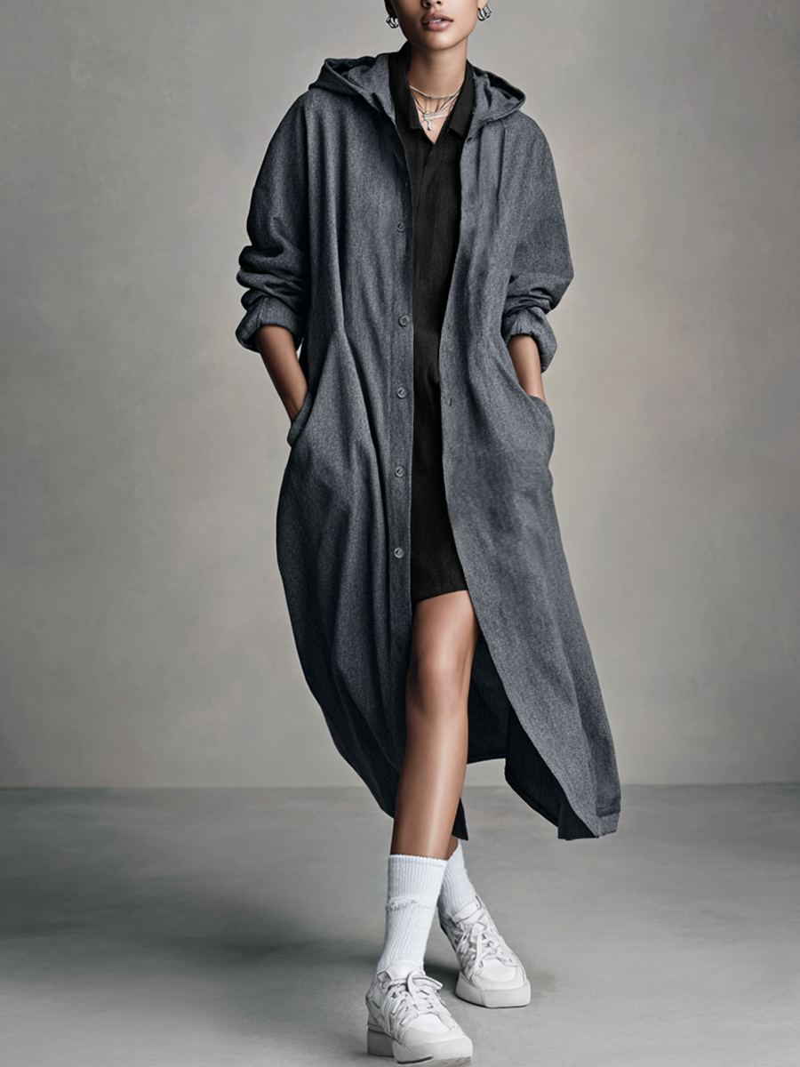 Women's Hooded Button-Front Relaxed Mid-length Coat MDA2577K8AP