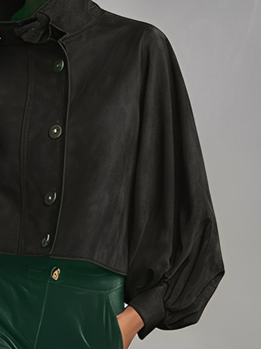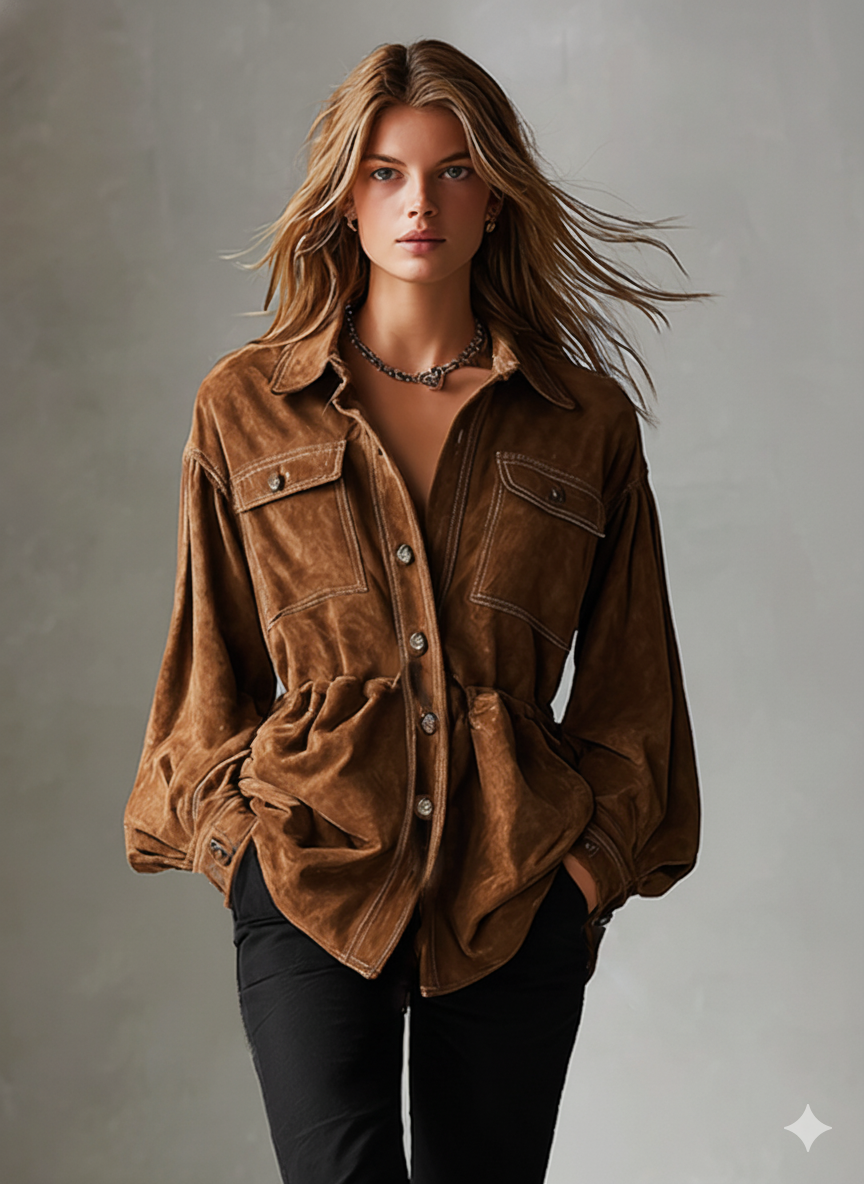 Women's Suede Single-Breasted Lapel Cropped Jacket MDA2720K3AP