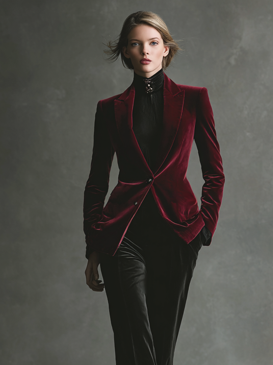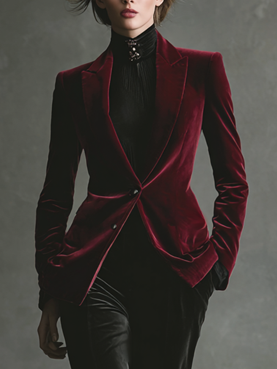 Women's Burgundy Velvet Tailored Single-Breasted Blazer MDA2620K1AP