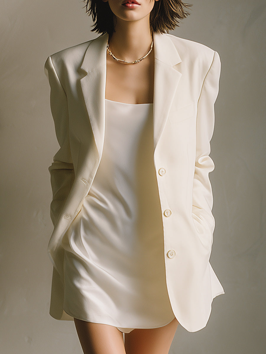 Women's Ivory Satin Loose Buttoned Blazer MDA2905K9I