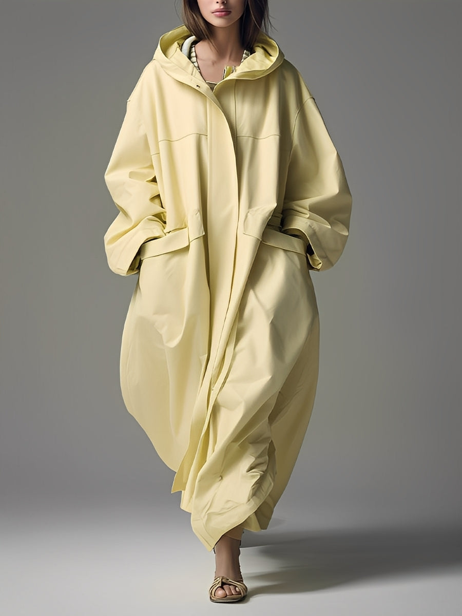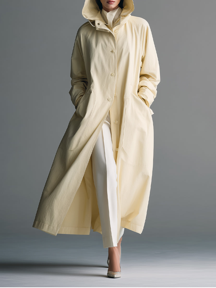 Women's Pale Yellow Cotton Long Coat MDA2607K9I
