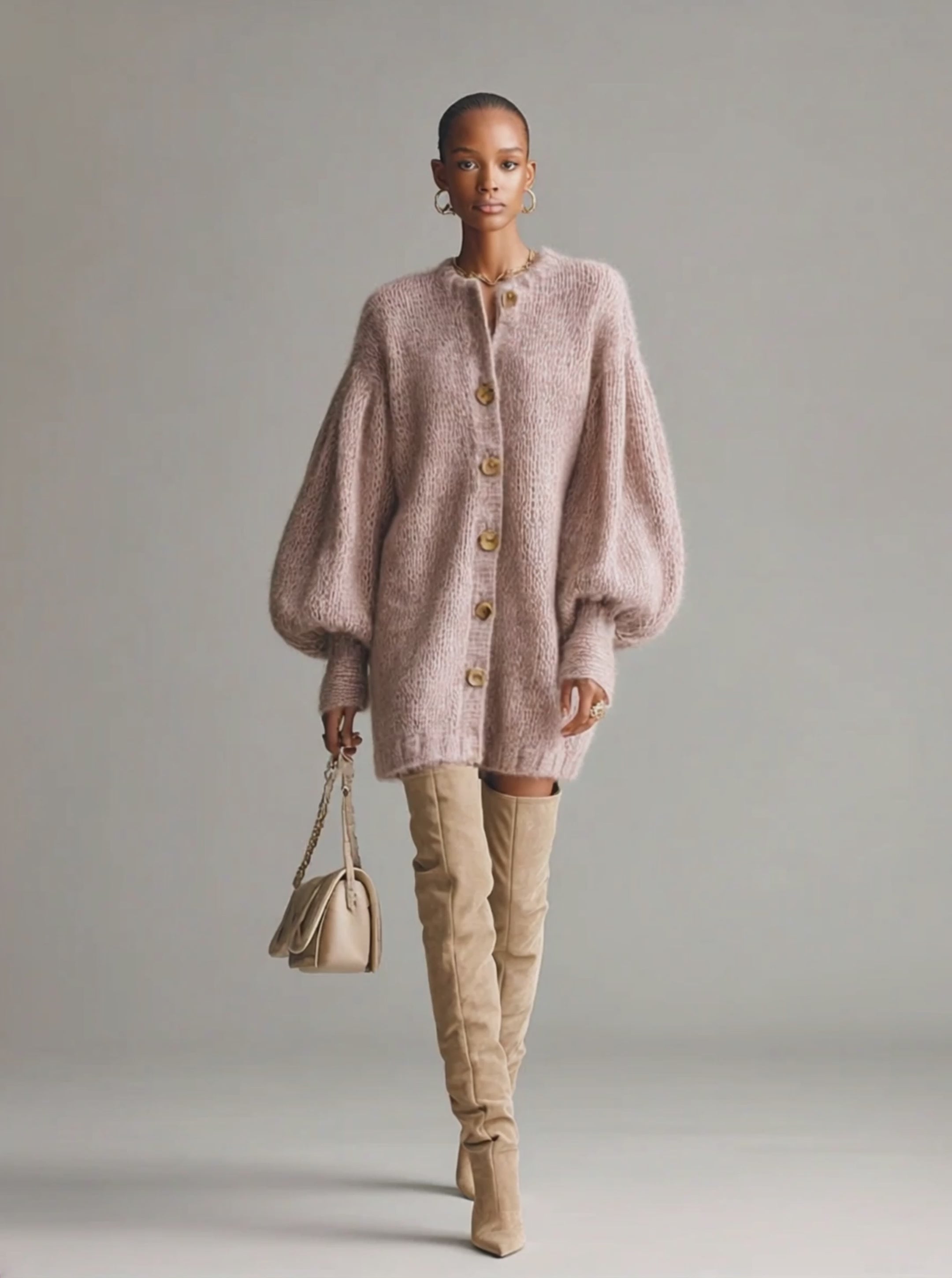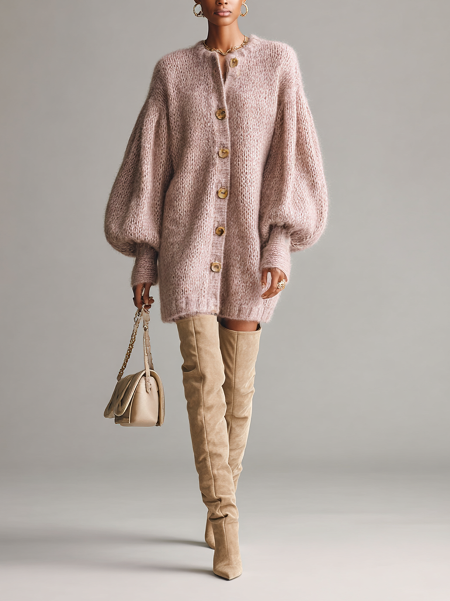 Women's Loose-fitting Mohair Mid-length Button-down Cardigan MDA2554K7AP