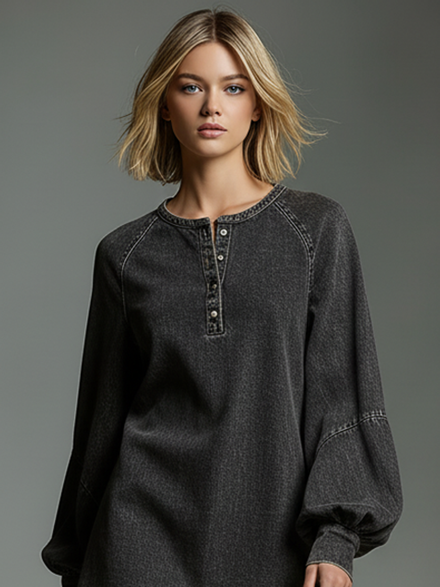 Women's Loose-fitting Washed Denim Round-neck Mini Dress MDA1436K5Y