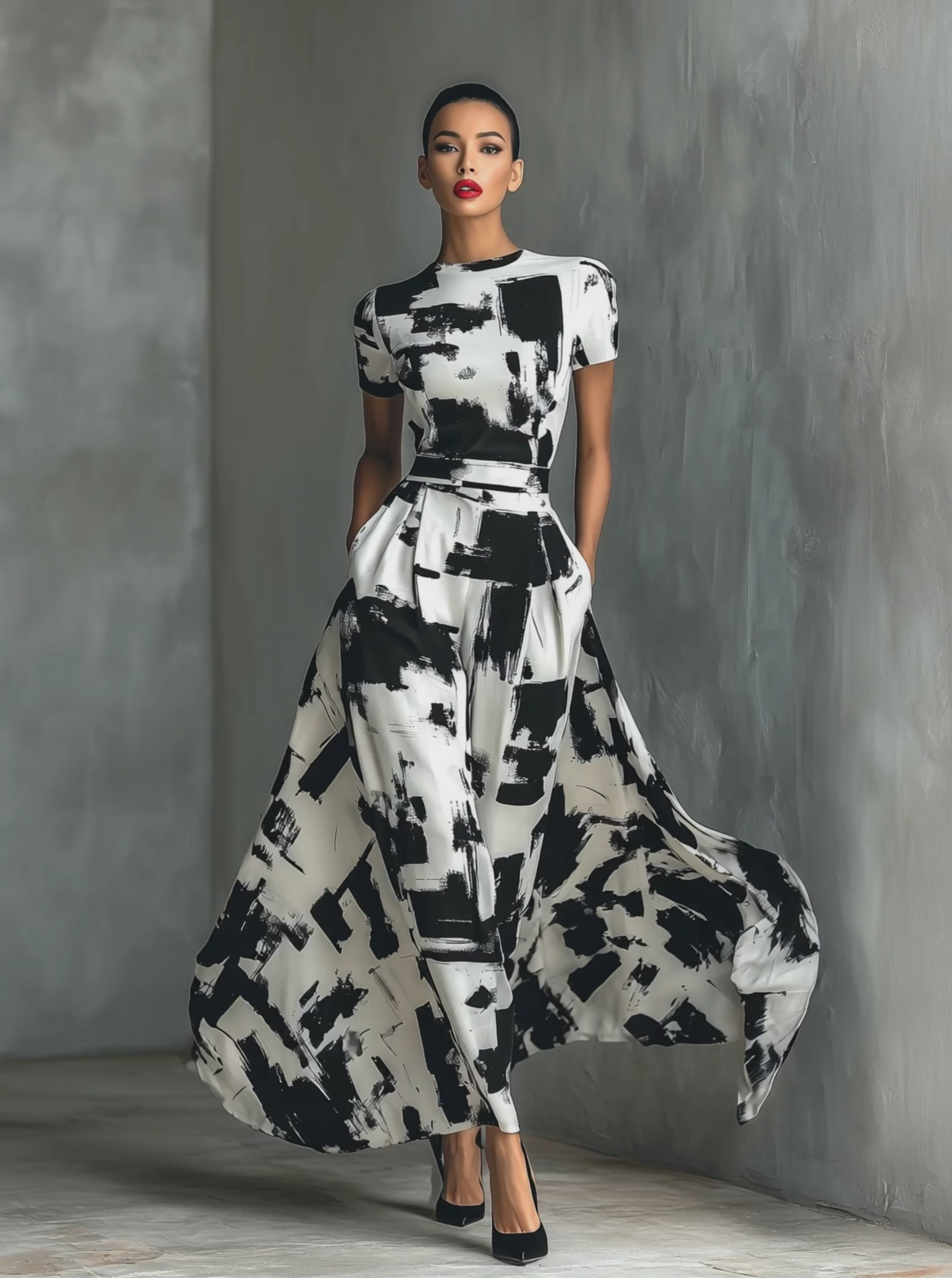 Women's Abstract Print Short Sleeve Maxi Dress MDA2452G9T