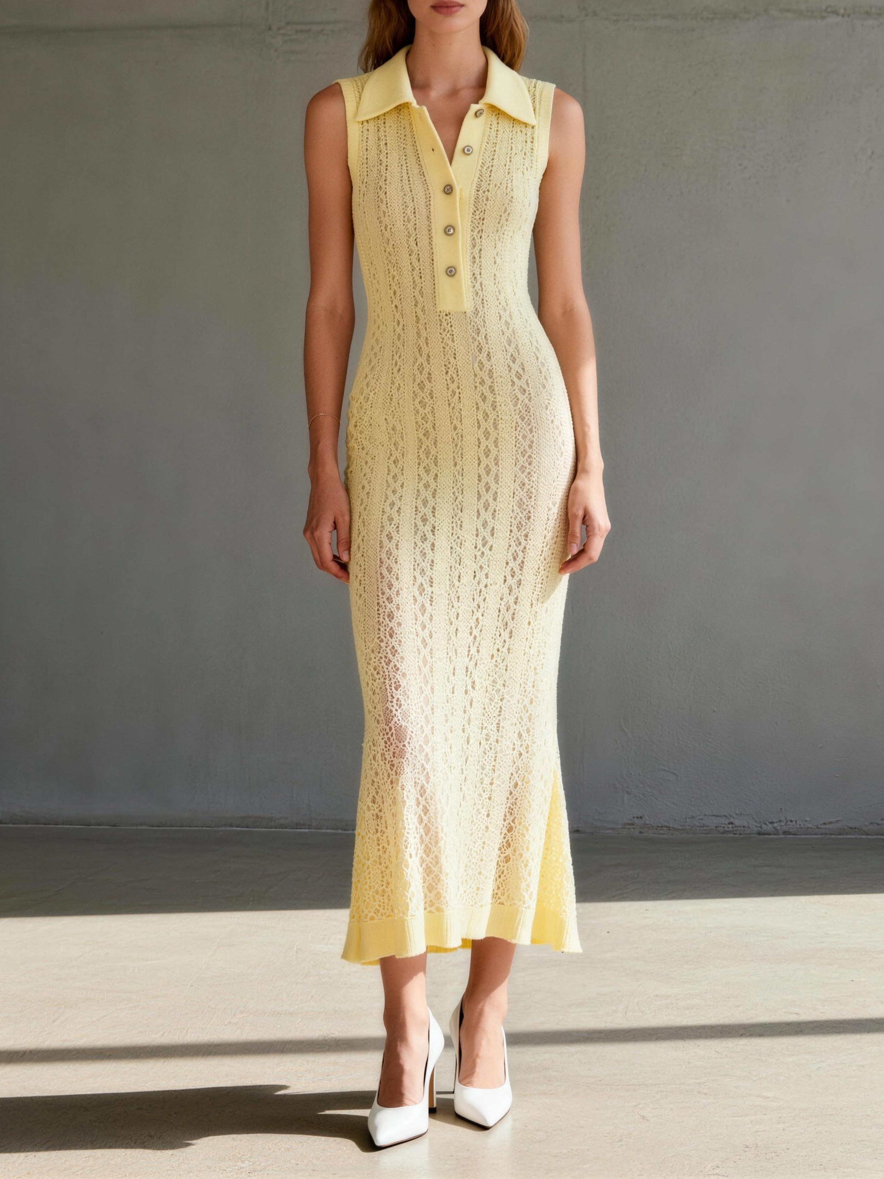 Women's Minimalist Knitted Shirt-collar Sleeveless Maxi Dress MDZ0559A0Y