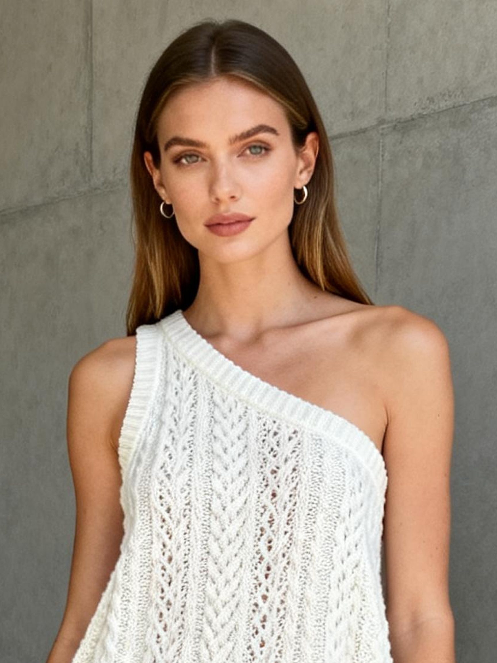 Women's Simple Off-the-shoulder Cable Knit Mini Dress MDZ0526A7Y