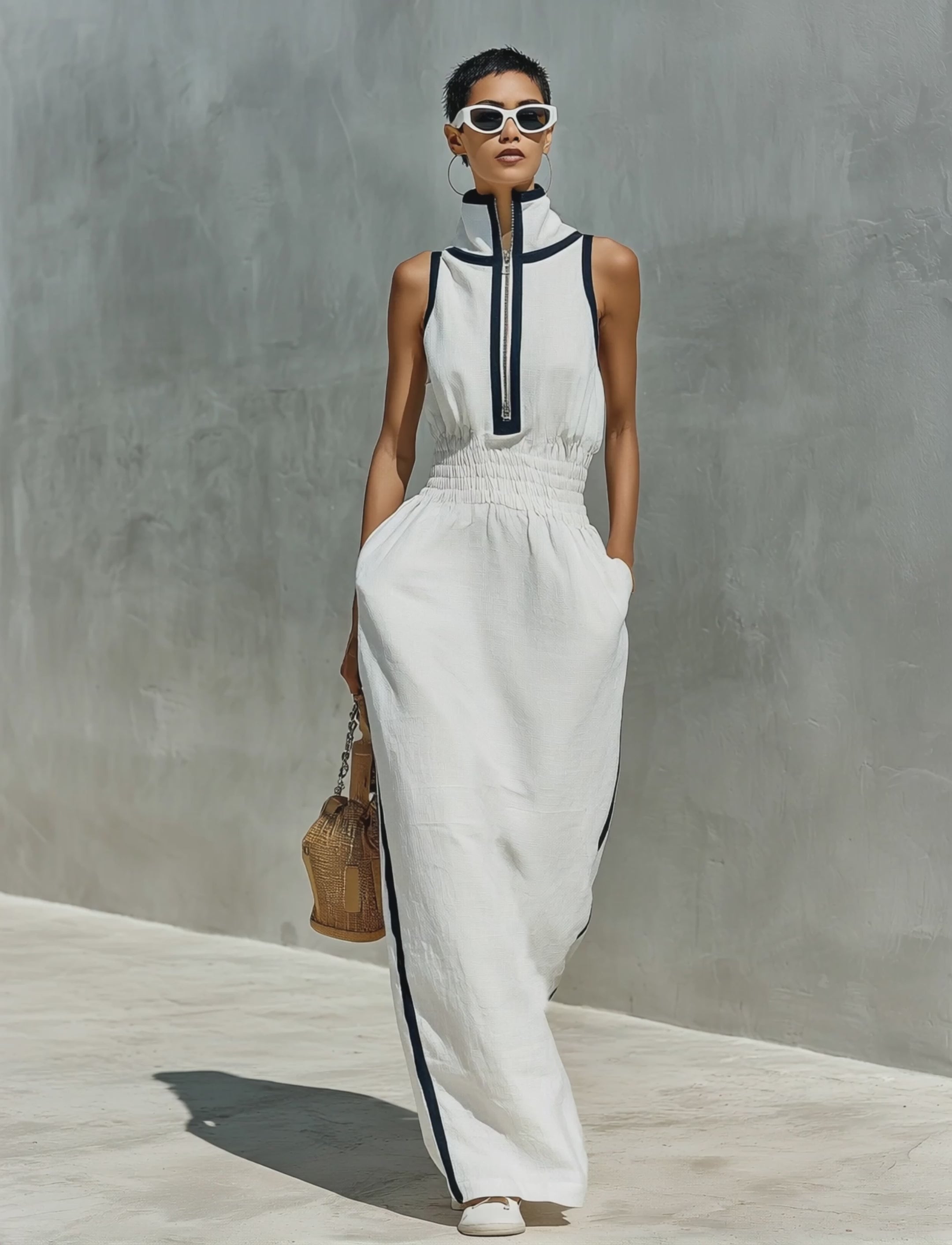 Women's Minimalist Zip-up Collar Sleeveless Maxi Dress MDZ0898A1Y
