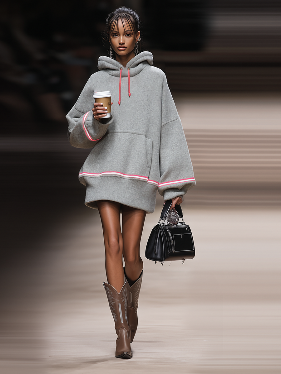 Women’s Oversized Hooded Long Sleeve Mini Sweatshirt Dress MDA1437K4AP