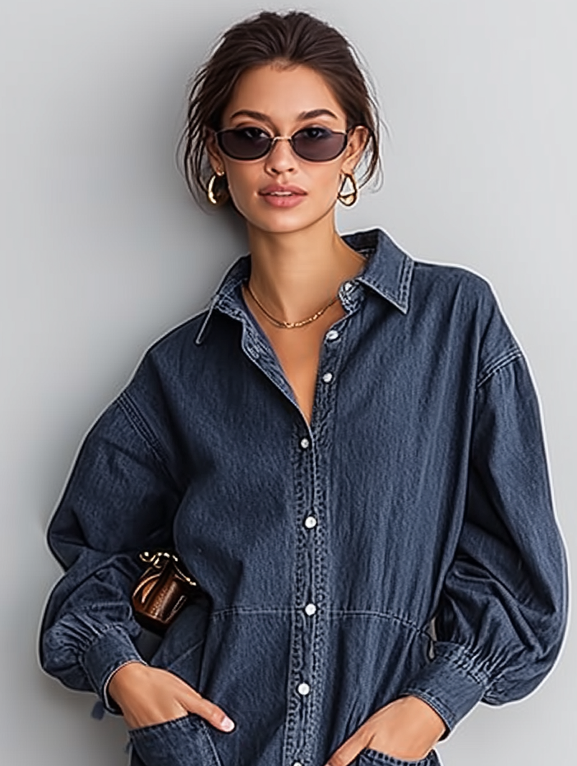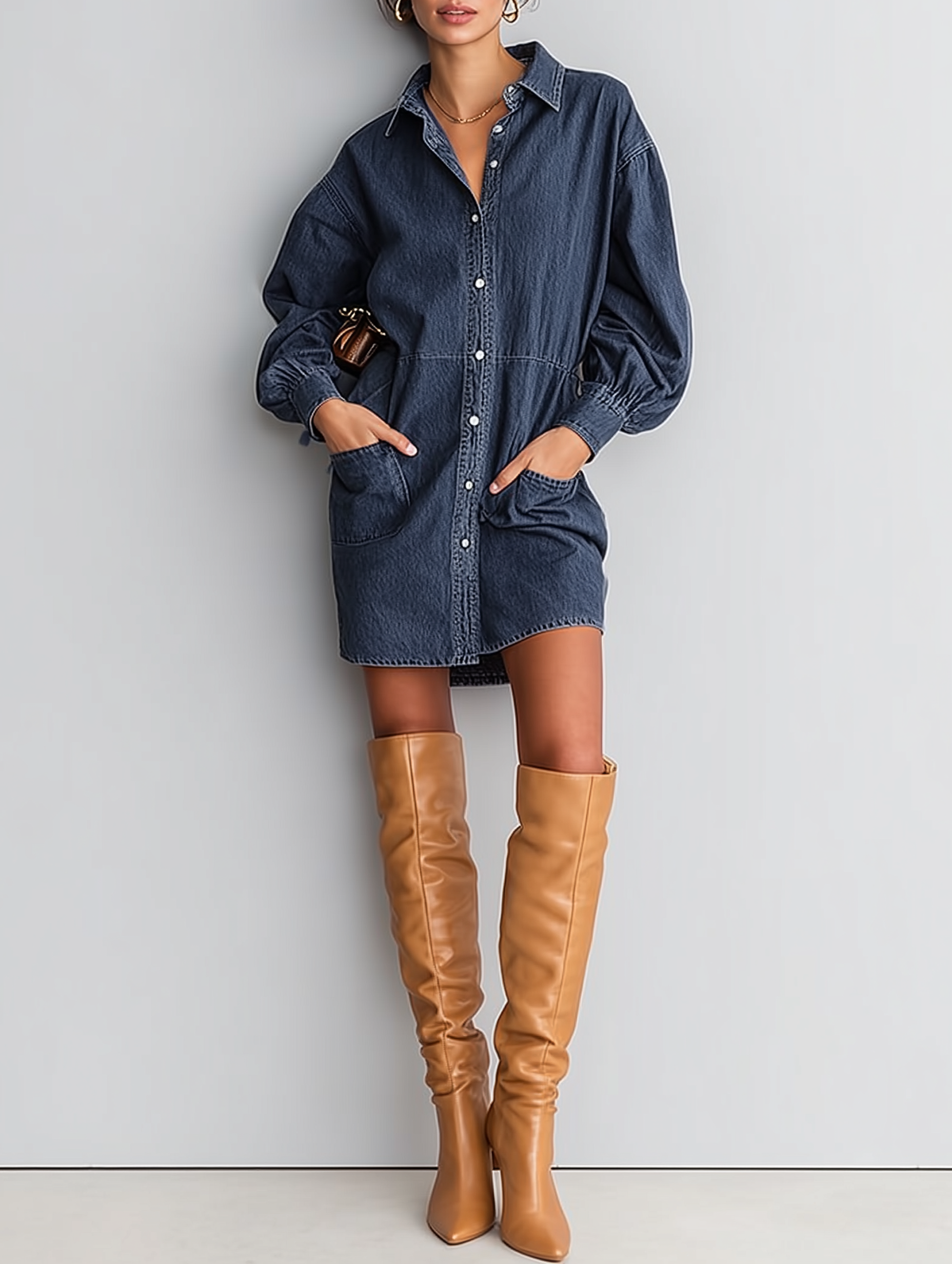 Women's Minimalist Single-breasted Lapel Mini Dress MDA1690L4Y