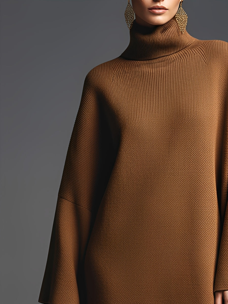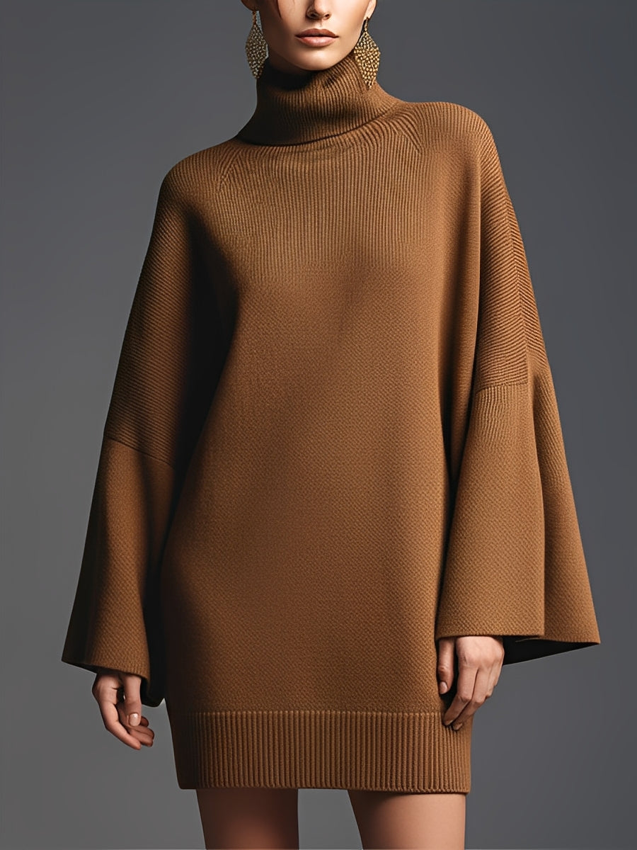 Women's Loose-fitting Faux Suede Halter Neck Semi-high Collar Lantern Sleeve Mini Dress MDA3118J4Y