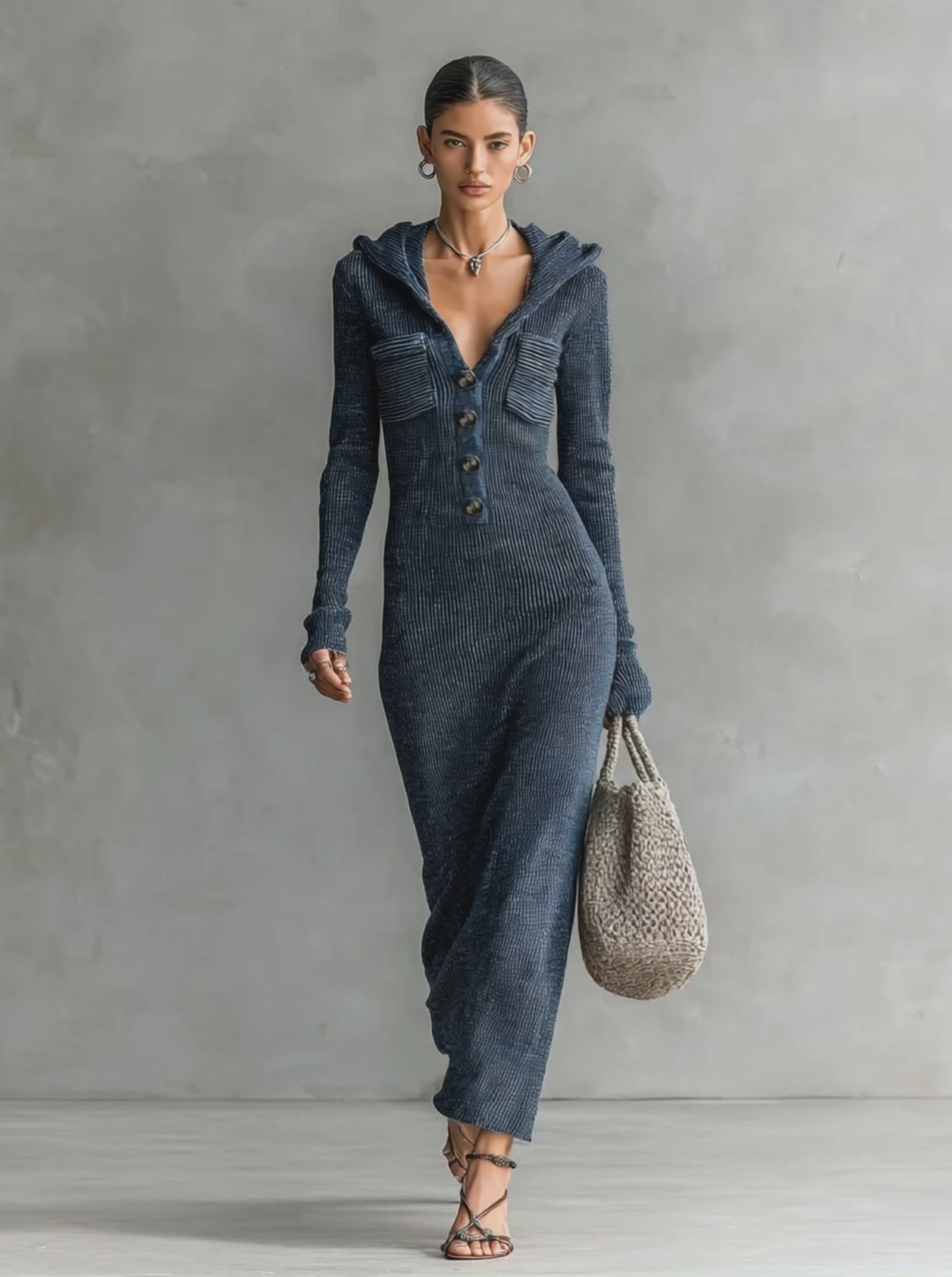 Women's Slim-fit Hooded Knitted Maxi Dress MDA1451H6Y