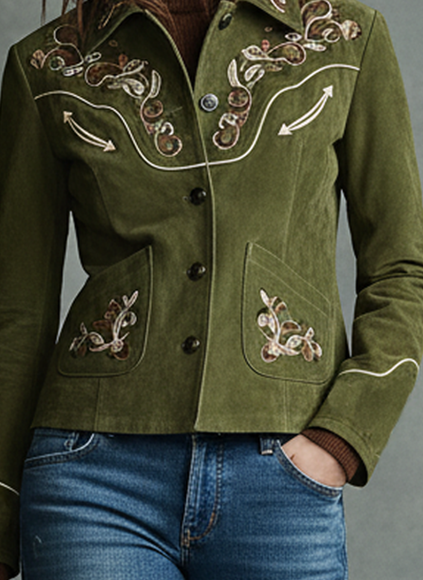Women's Faux Suede Embroidered Single-breasted Short Jacket MDA3018J9Y