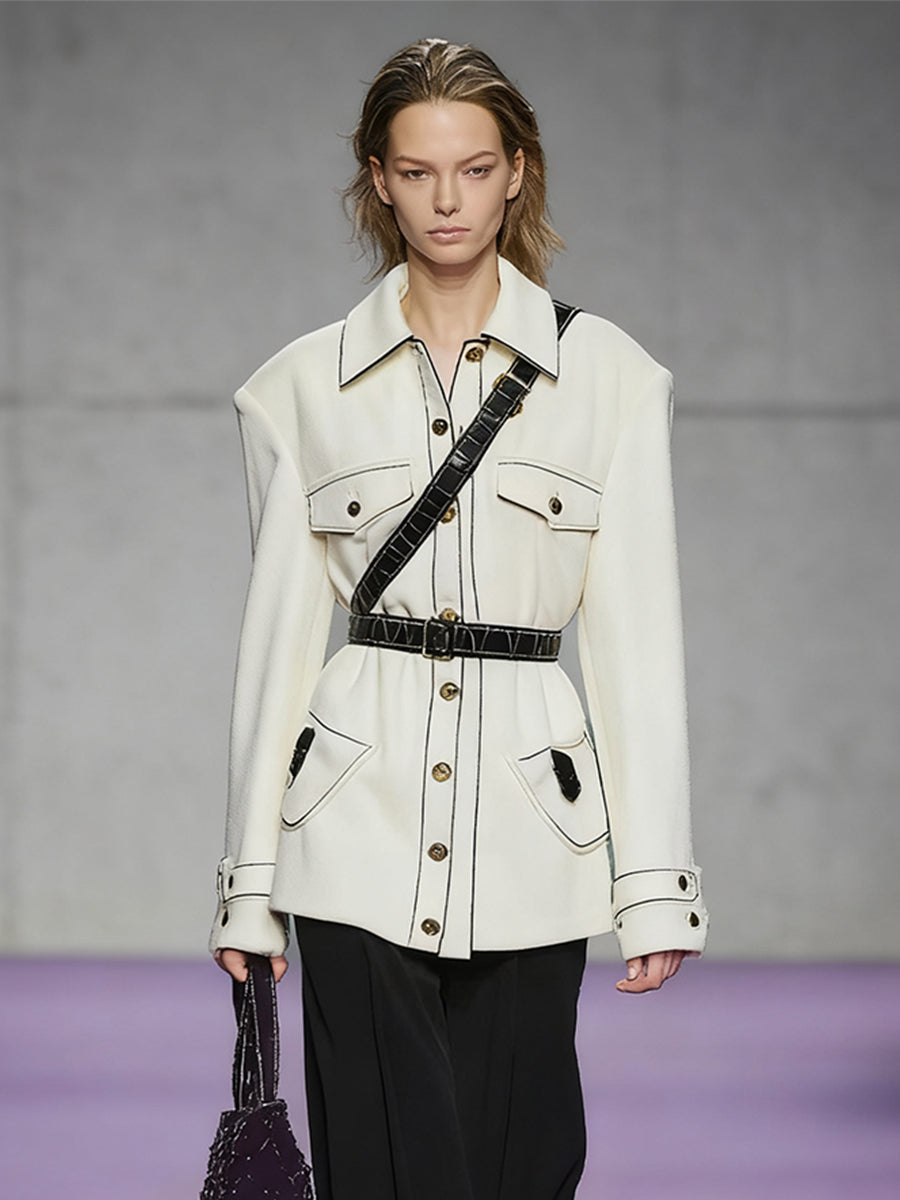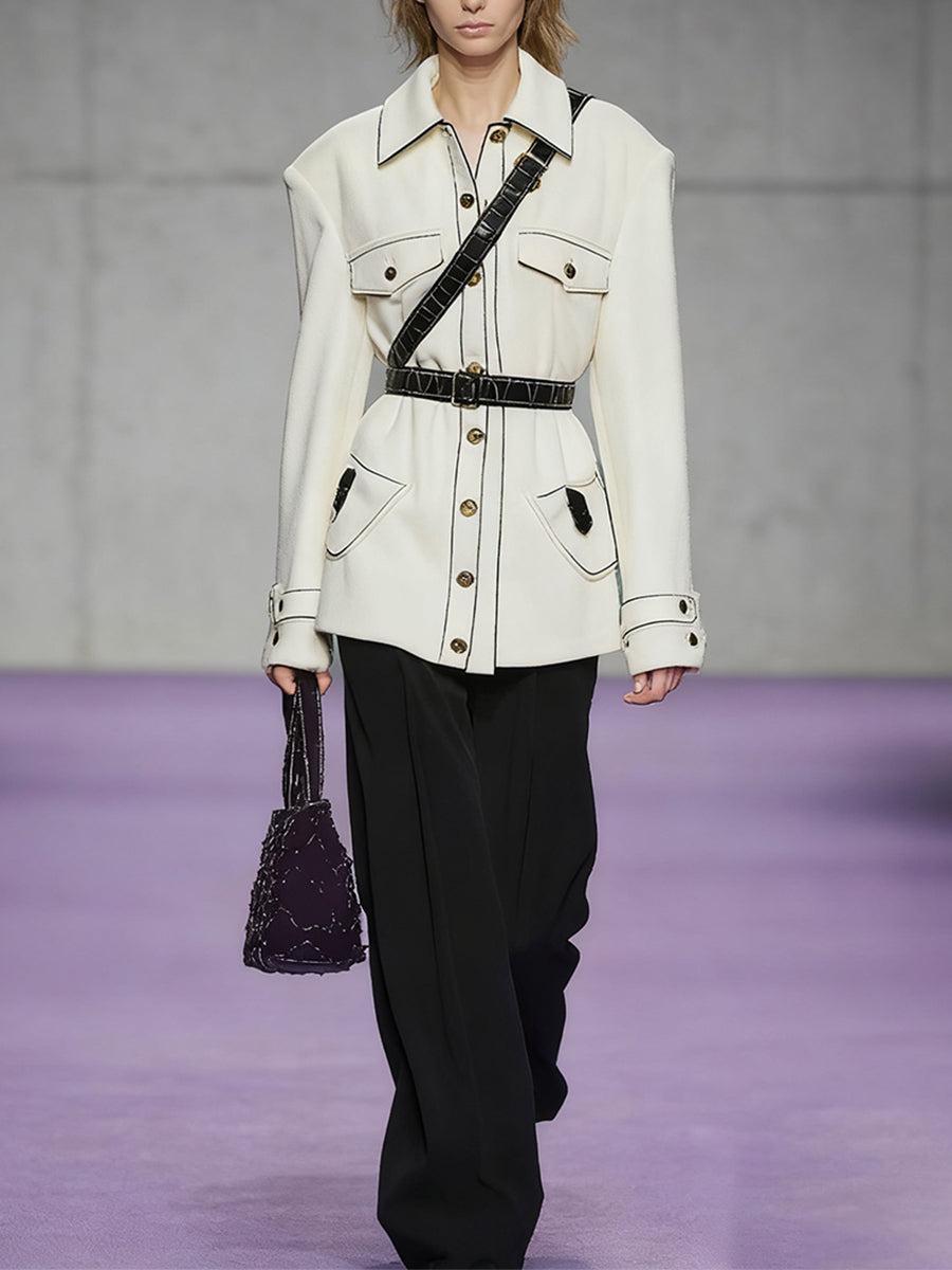 Women's Ivory White Woven Workwear-style Jacket MDA0473K1I