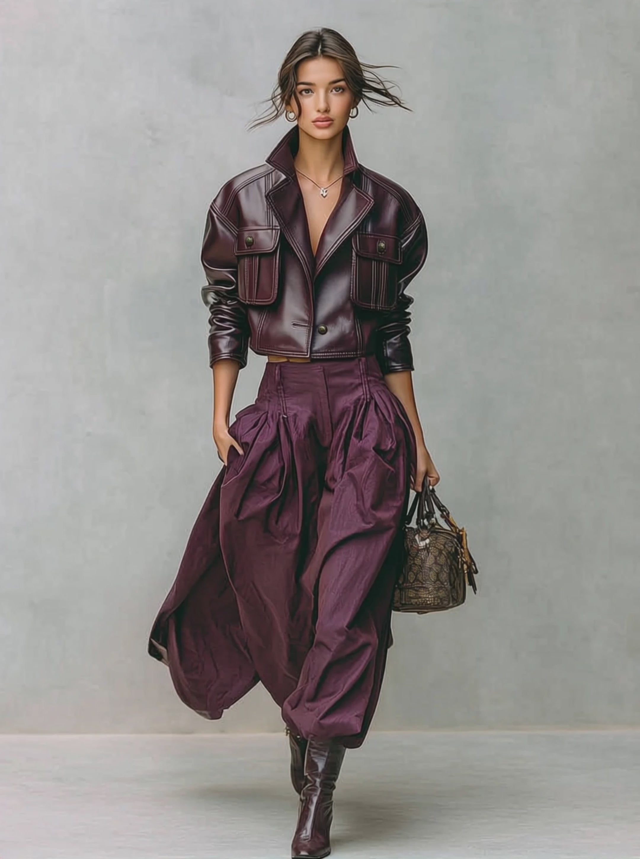Women's Loose PU Leather Short Double Chest Pocket Jacket MDA1666I2Y