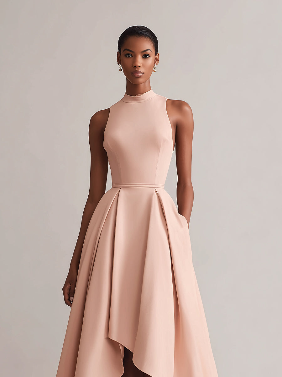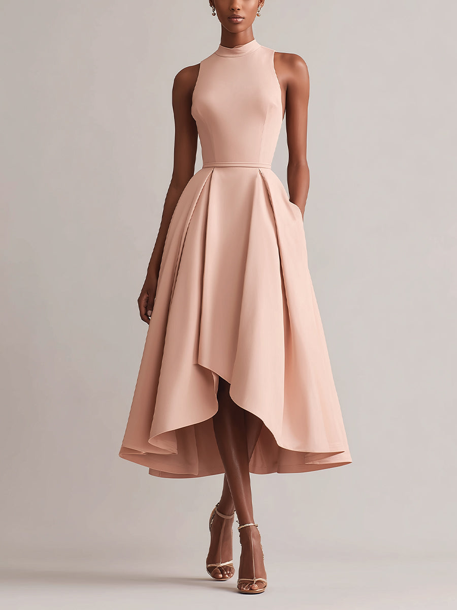 Women's Pink Structured Dress With Halter Neck & High-Low Skirt, Timeless Elegant-Sophisticated Style Dress MDZ0613A7I