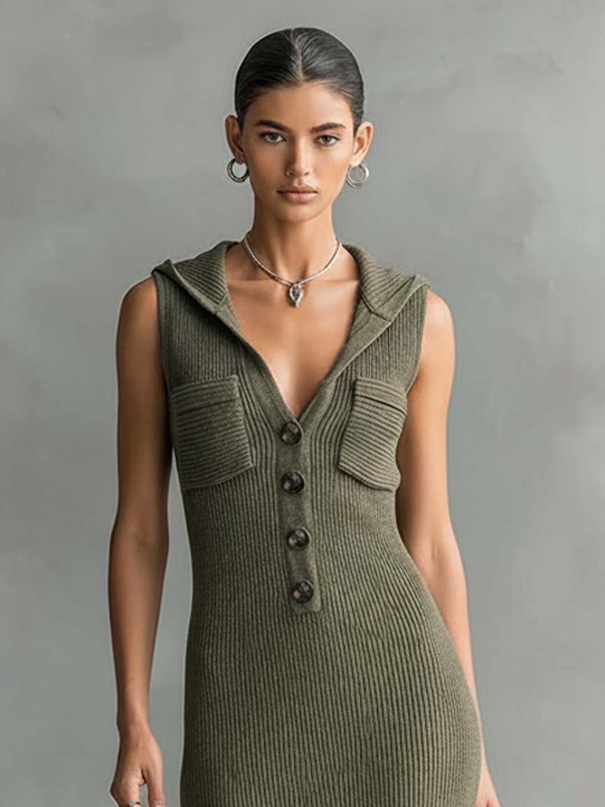 Women's Minimalist Knitted Hooded Sleeveless Mini Dress MDZ0518A0Y