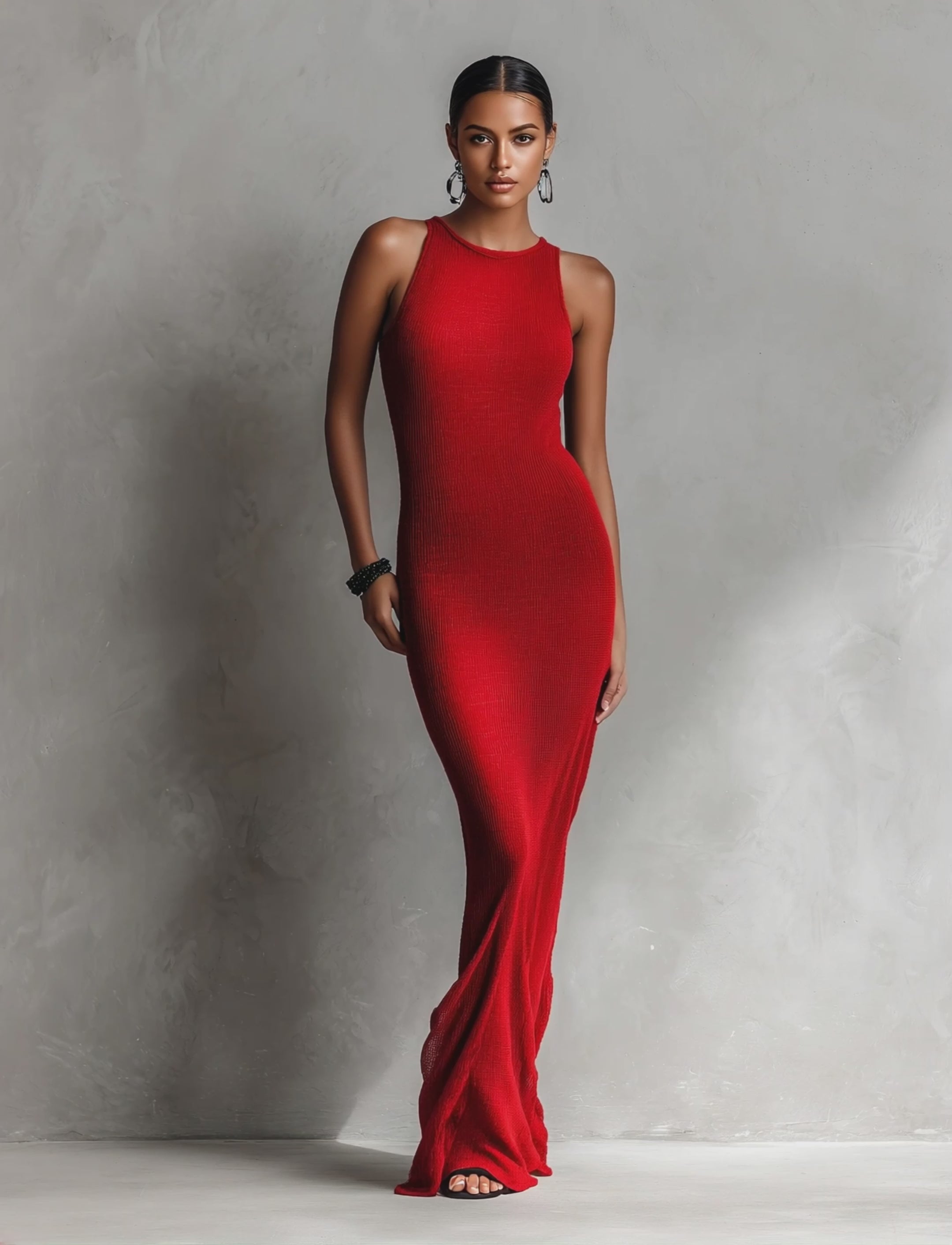 Women's Minimalist Knitted Sleeveless Floor-length Maxi Dress MDA3124L6Y