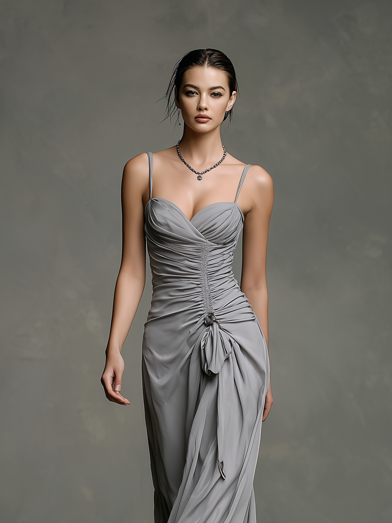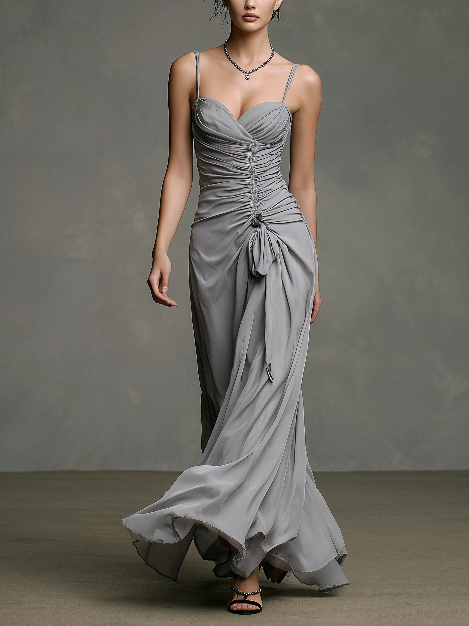 Women's Fashionable Gray Chiffon Sleeveless Maxi Dress With Ruched Waist MDZ0614A9AN