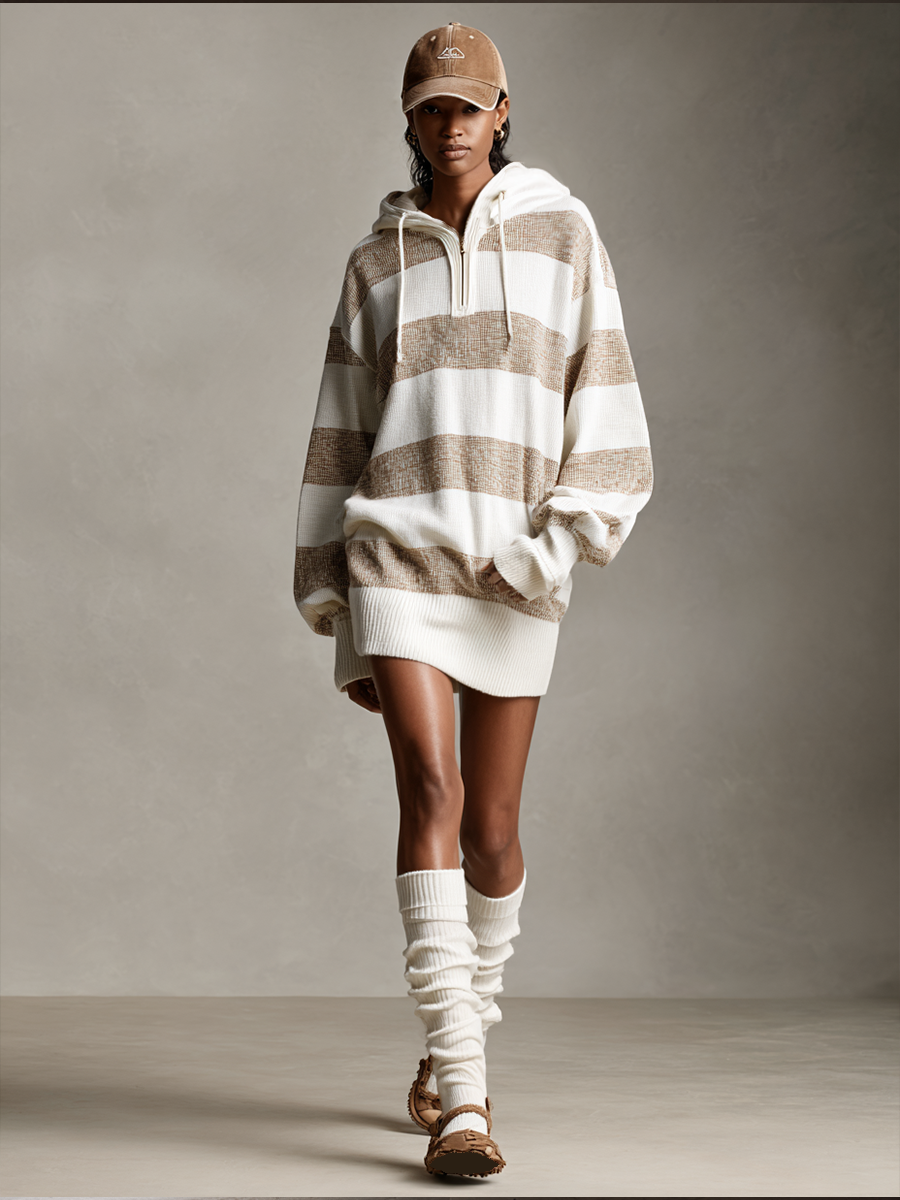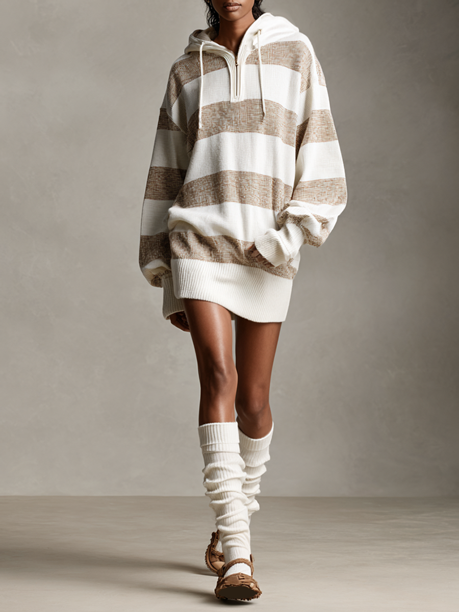 Women's Striped Hooded Knit Mini Dress MDA2575K3AP