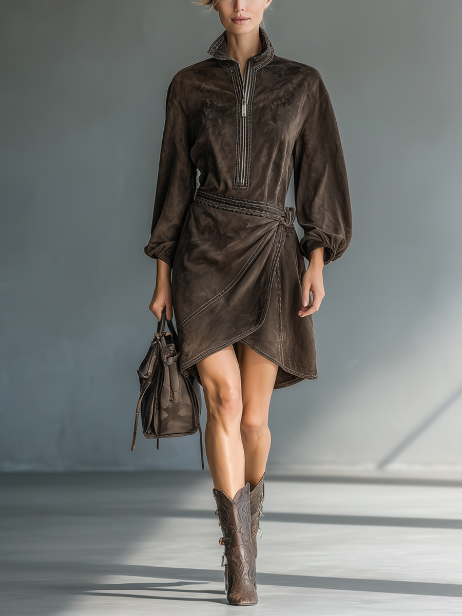 Women's Brown Faux Suede Casual Mini Dress MDA2155J5T