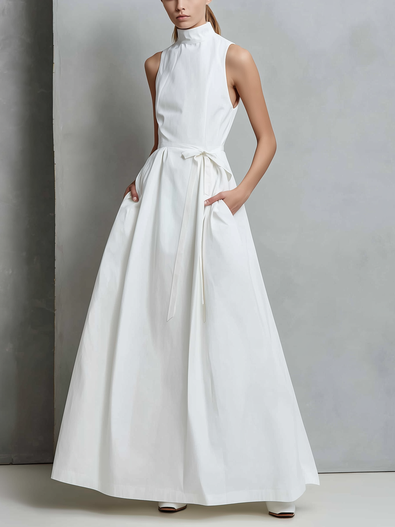 Women's Elegant White High-neck Sleeveless Woven Maxi Dress MDZ0733A5AN