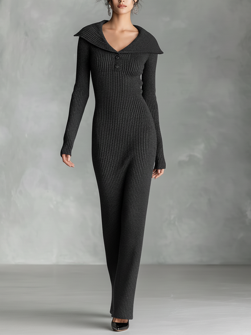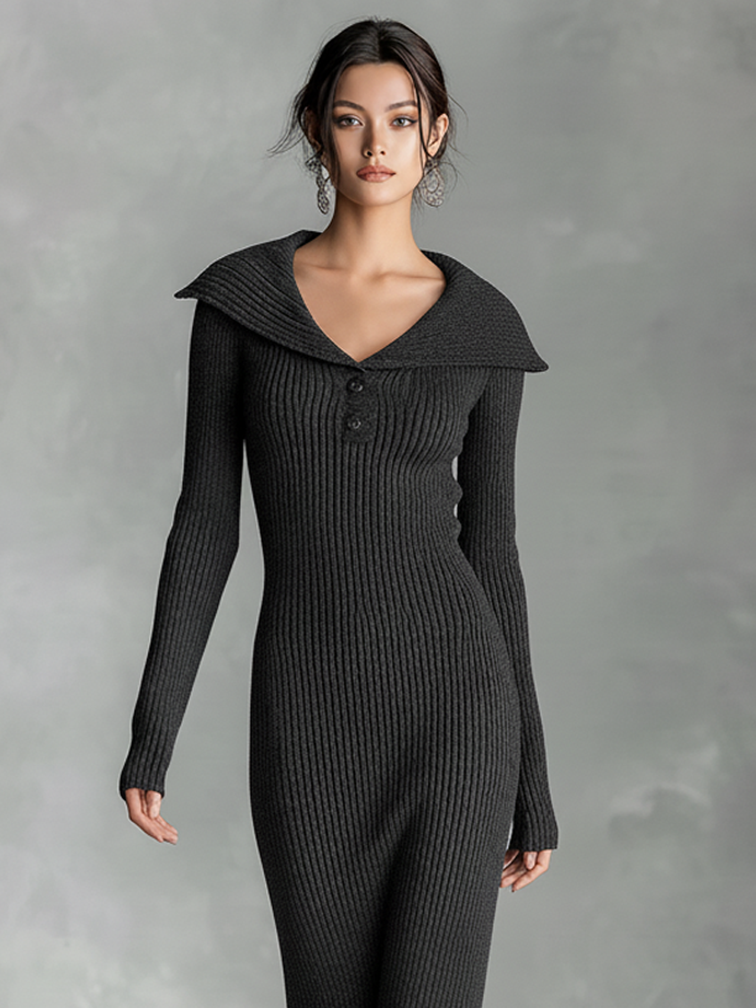 Women's Slim-fit Knitted Button-up Lapel Maxi Dress MDA2839K1Y