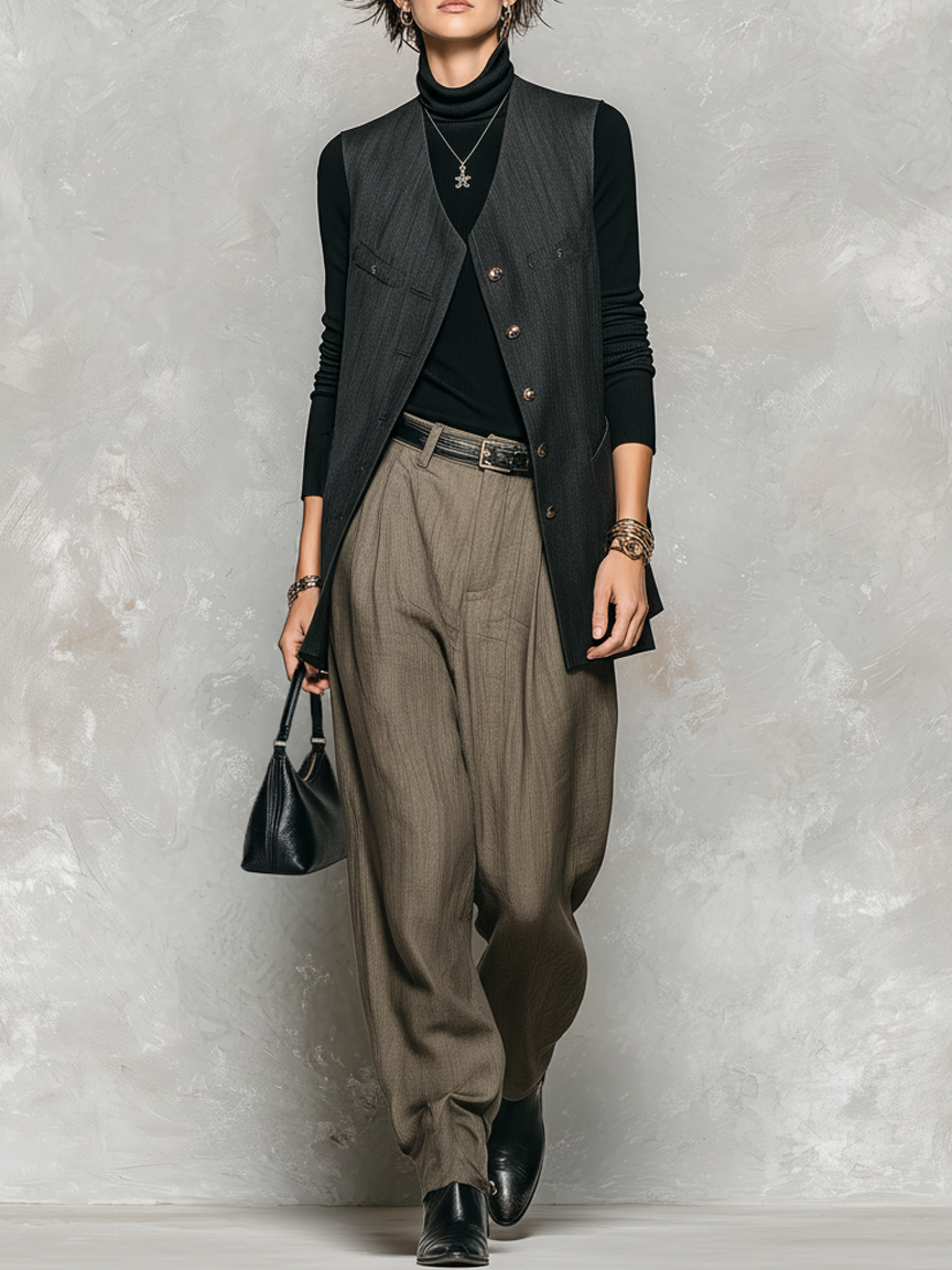 Women's Minimalist Cotton And Linen Vest And Trousers Set (belt Not Included) MDA2730K2Y