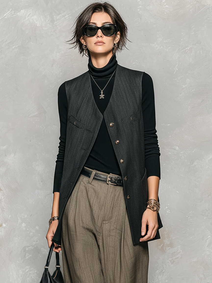Women's Minimalist Tweed V-neck Single-breasted Vest MDA2632K3Y