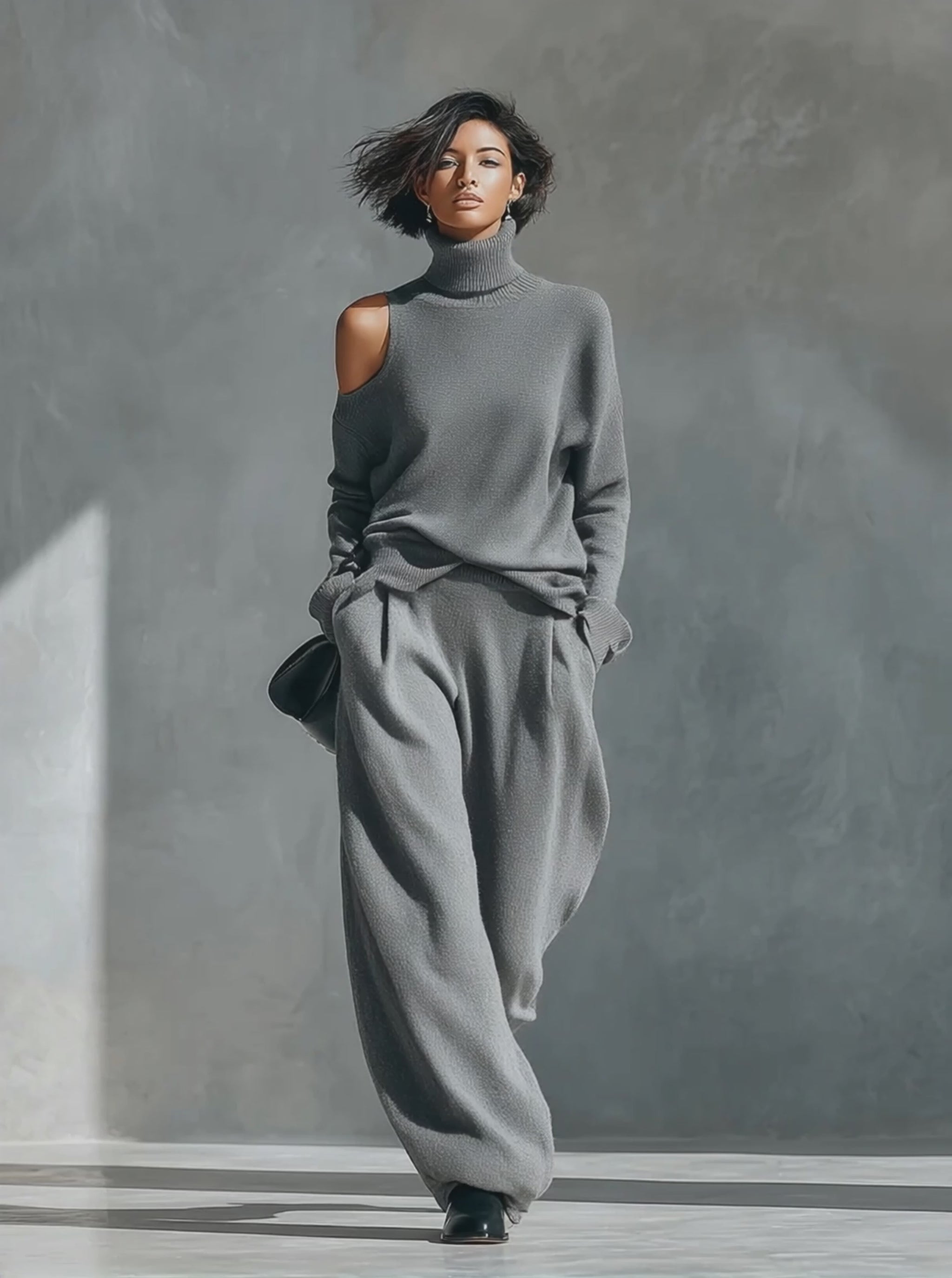 Women's One-shoulder Cut-out Modern Knit-Blend Set