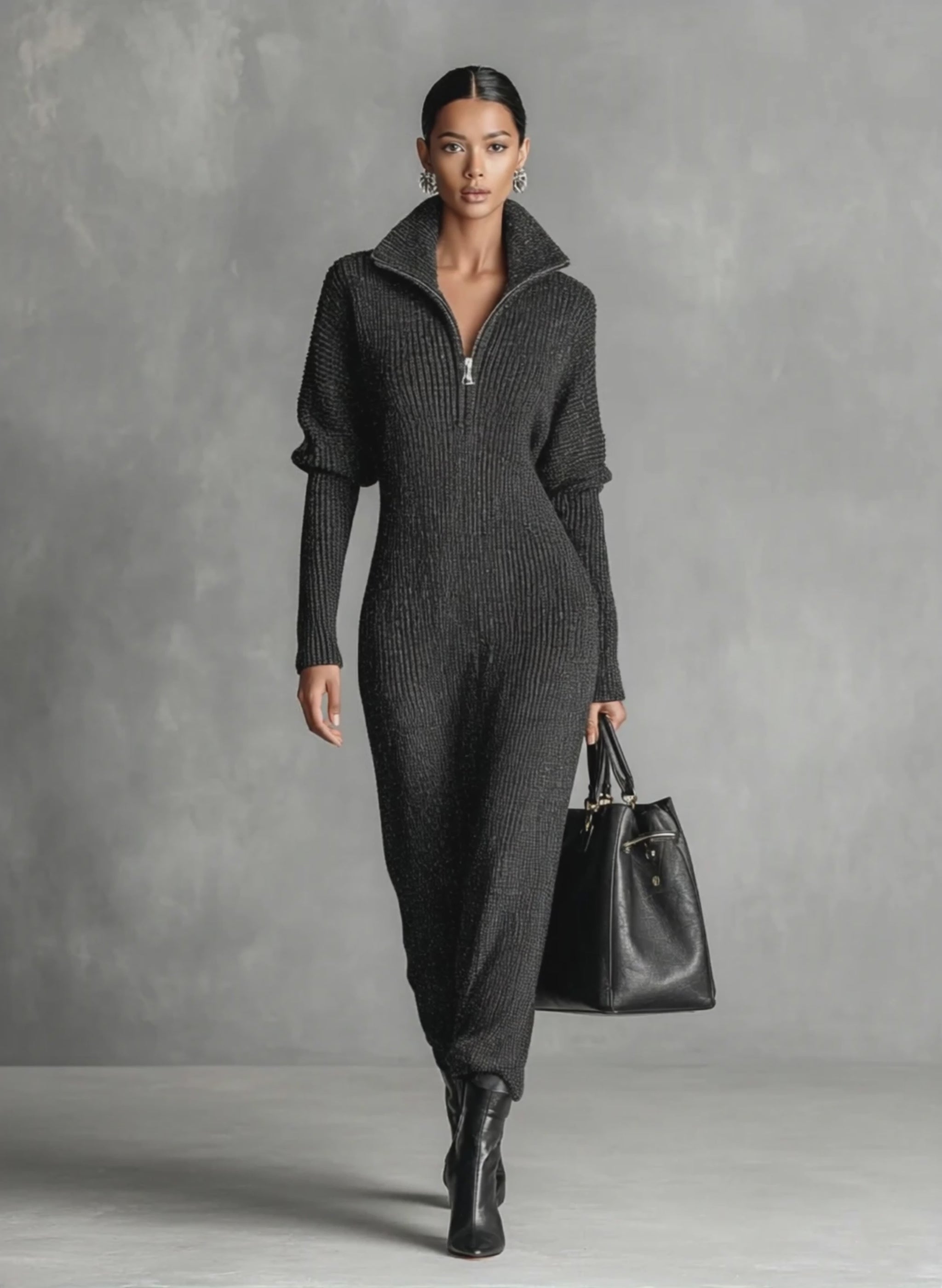 Achieve understated elegance with this minimalist knitted maxi dress. Crafted in a solid color with a sleek zipper neck design, it combines comfort and modern style for any casual or semi-formal occasion.