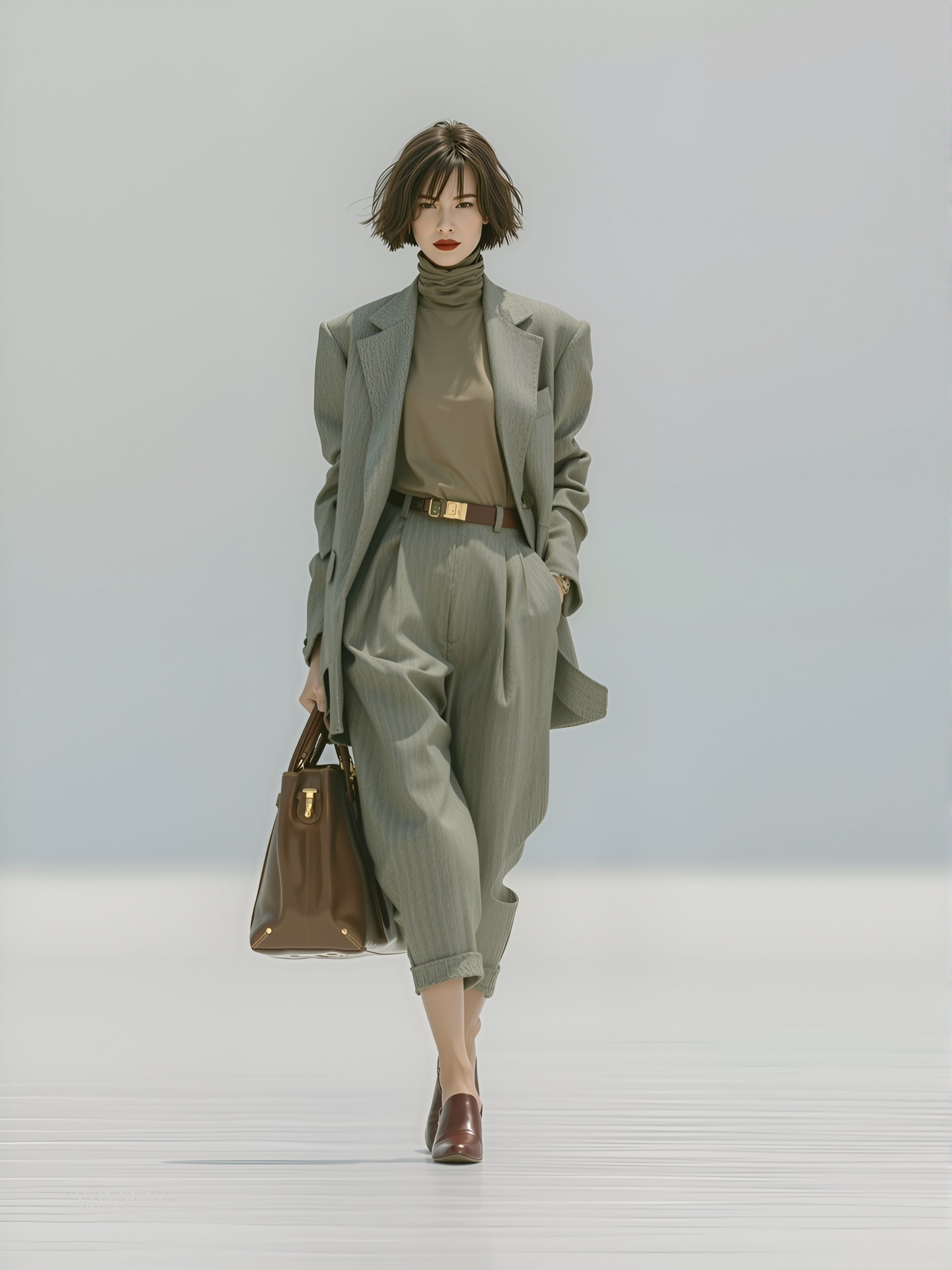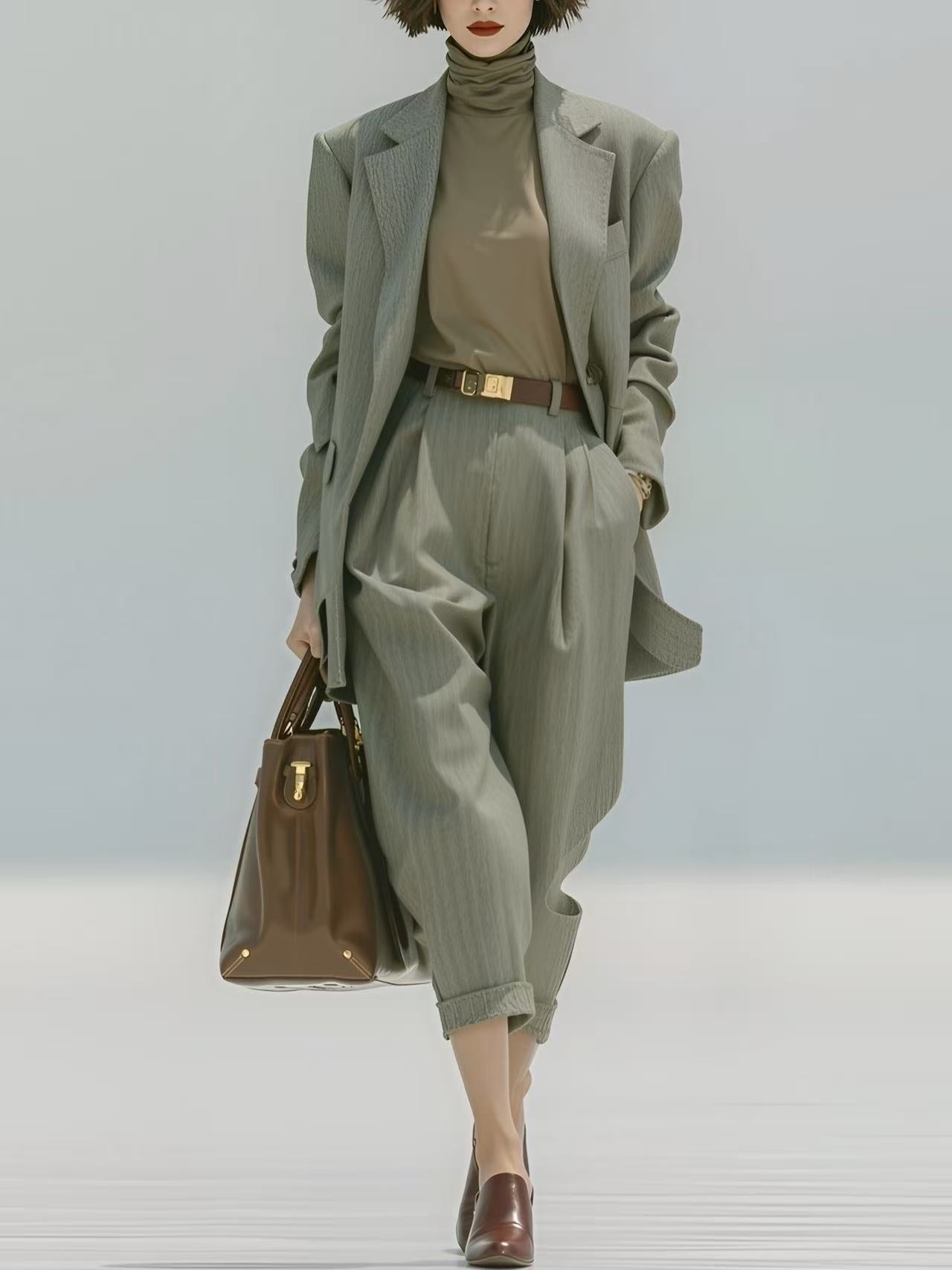 Women's Minimalist Business Style Gray-green Suit Set (belt Not Included) MDA0543K1AN