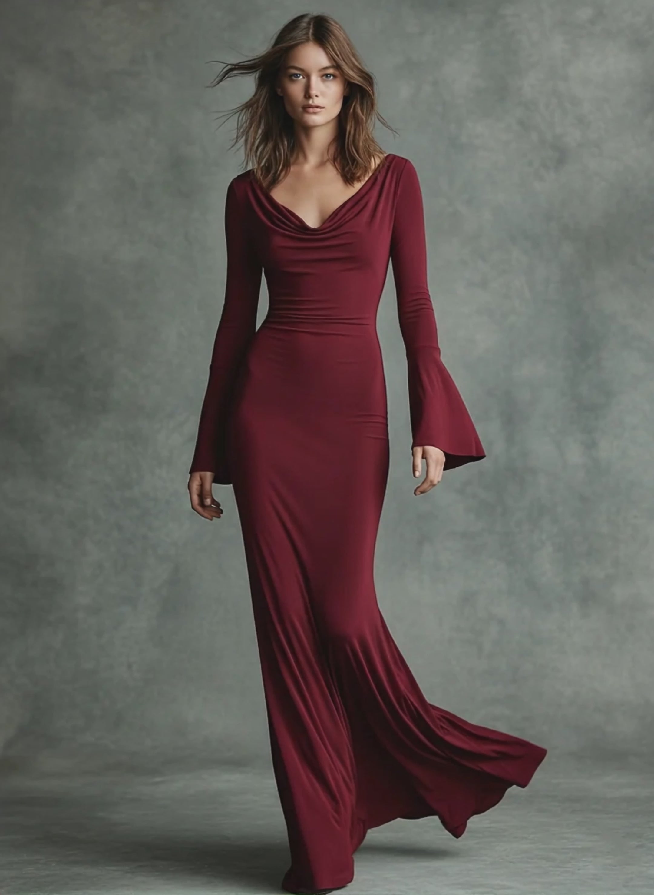 Women's Slim-fit High-neck Bell-sleeve Party Maxi Dress MDA3033J9Y