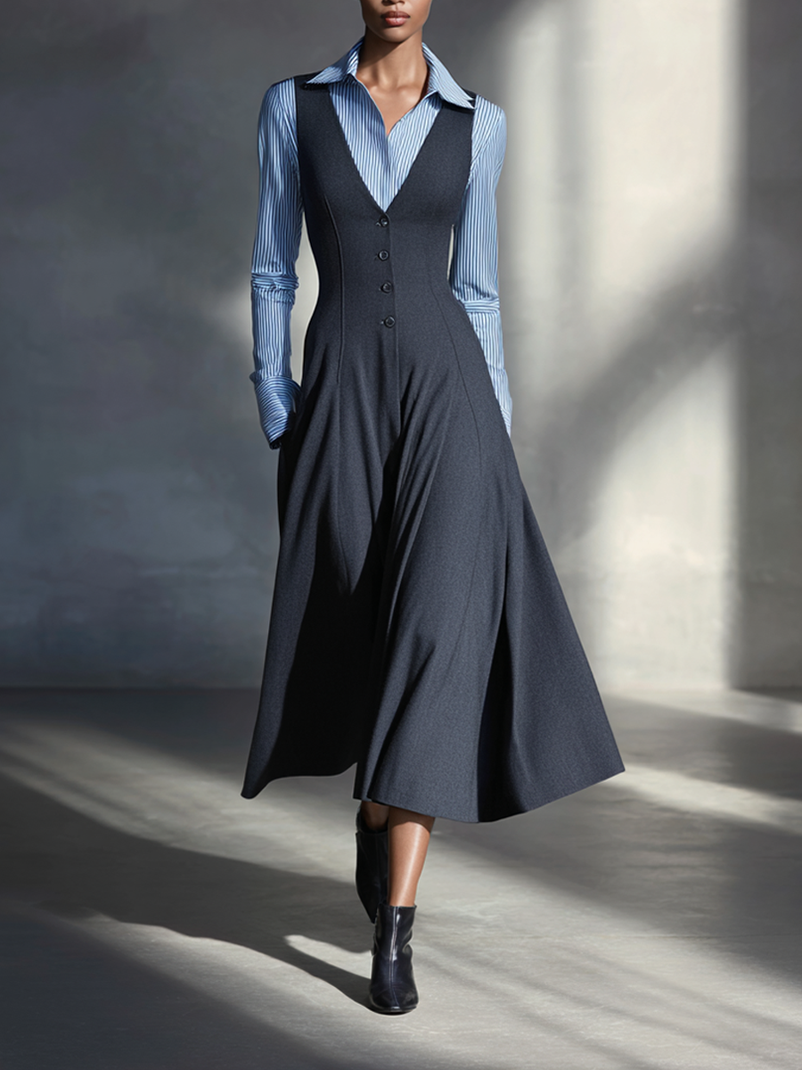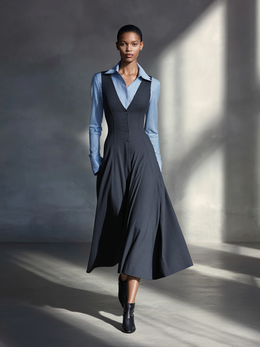 Women's Charcoal Grey Sleeveless Button-Down Midi Dress MDA1261L0AP