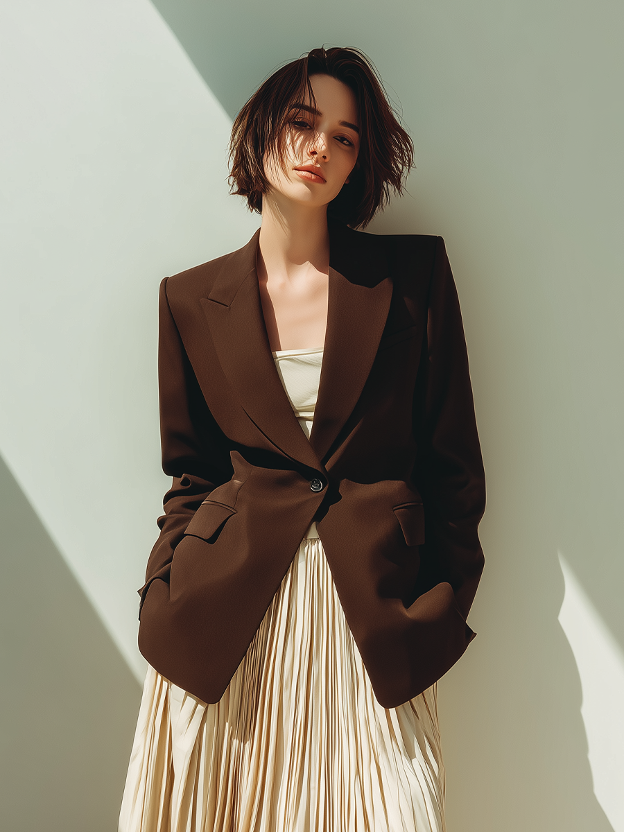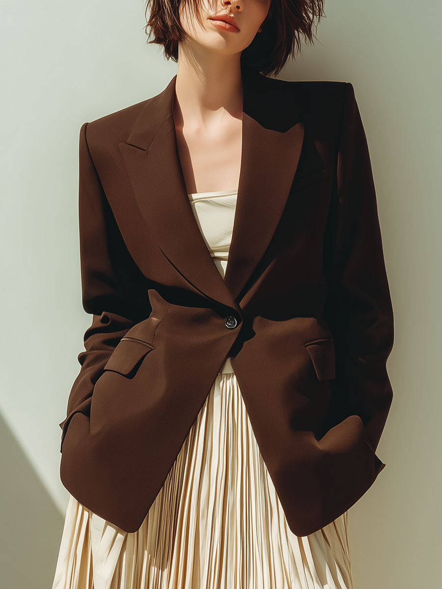 Women's Chocolate Brown Cotton Blend Tailored Single-button Blazer MDA0927L5T