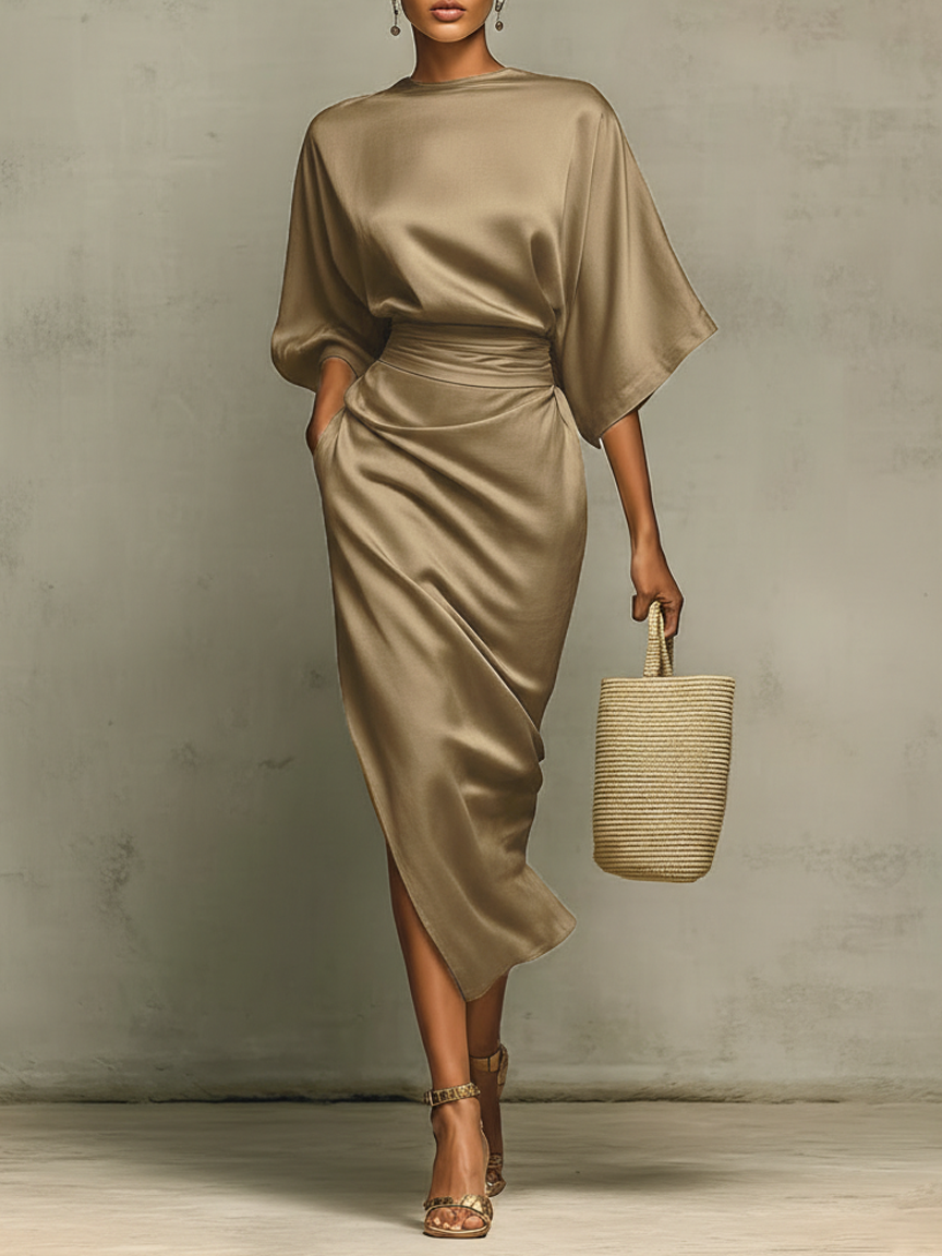 Women's Minimalist Satin Blouse And Skirt Set MDZ1202A3Y
