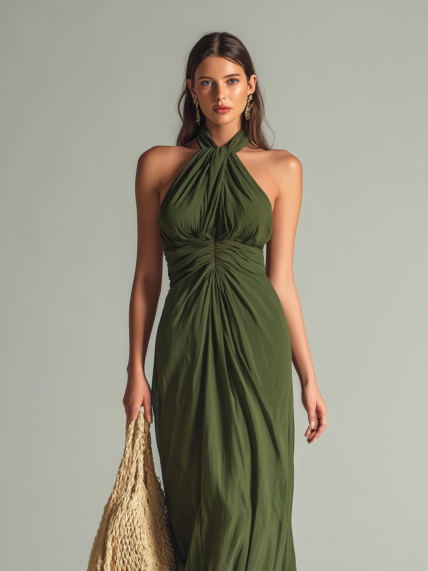 Women's Elegant Dark Green Chiffon Halter Neck Sleeveless Long Dress MDZ0272C8AN